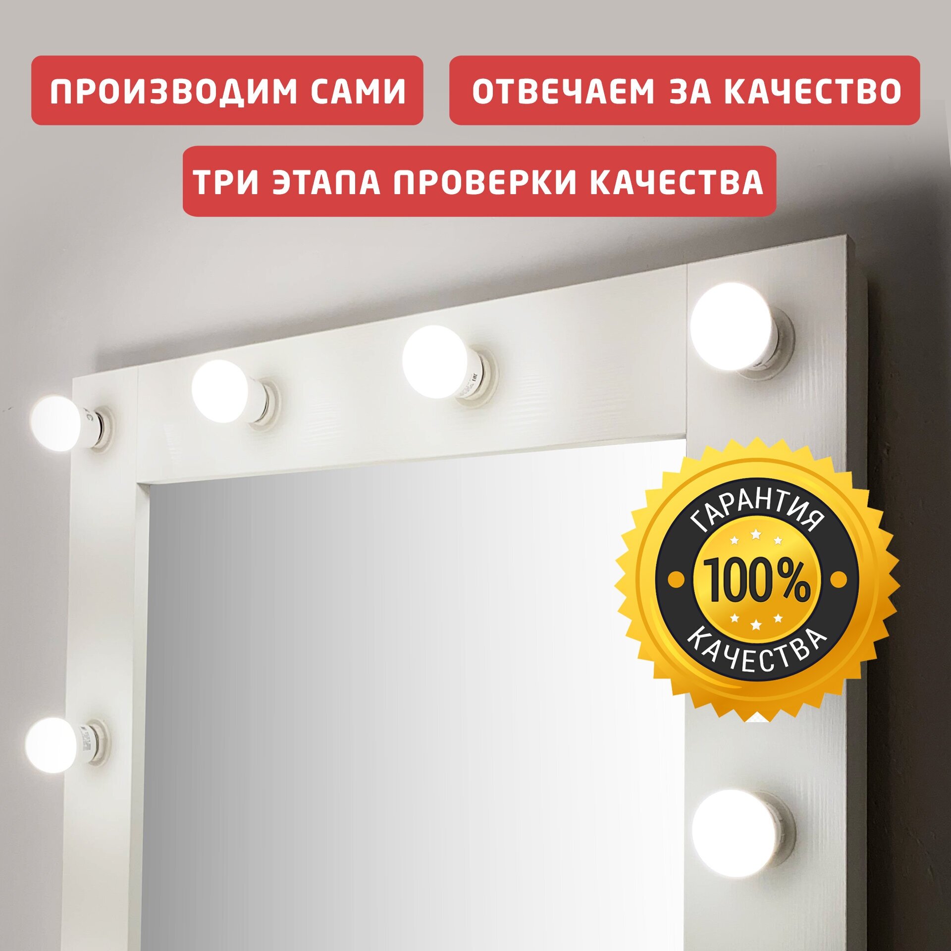 Купить Гримерное зеркало с лампочками BeautyUp 175/75 цвет "Белый"