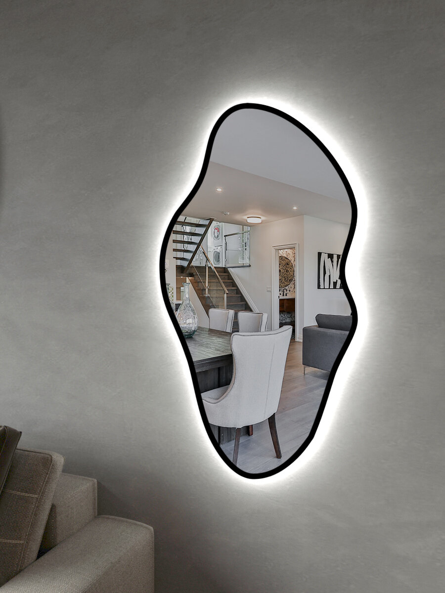 Зеркало настенное с подсветкой, фигурное, с черной окантовкой, 110*60 см