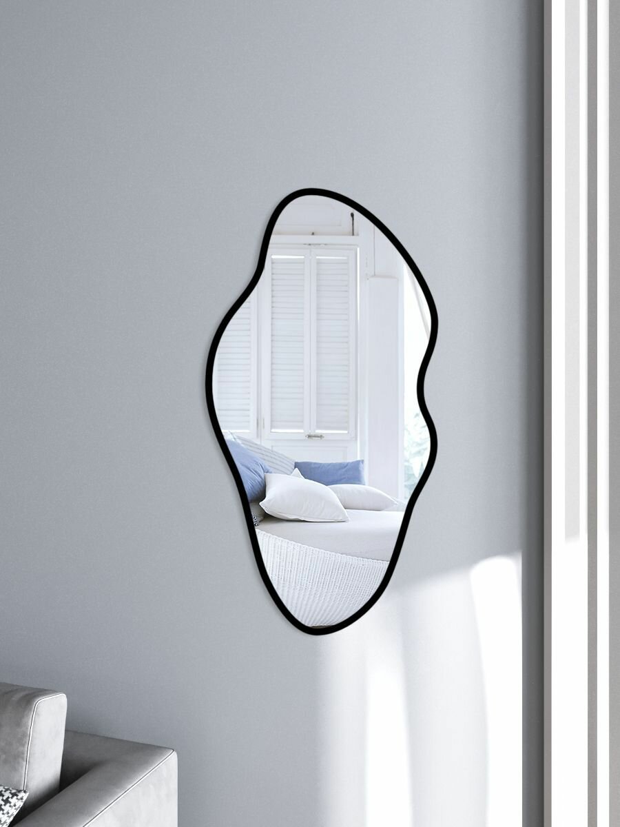 Фигурное зеркало MAKELI, настенное с черной окантовкой 77х45