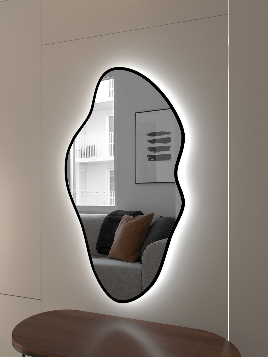 Зеркало настенное с подсветкой, фигурное, с черной окантовкой, 77*45 см