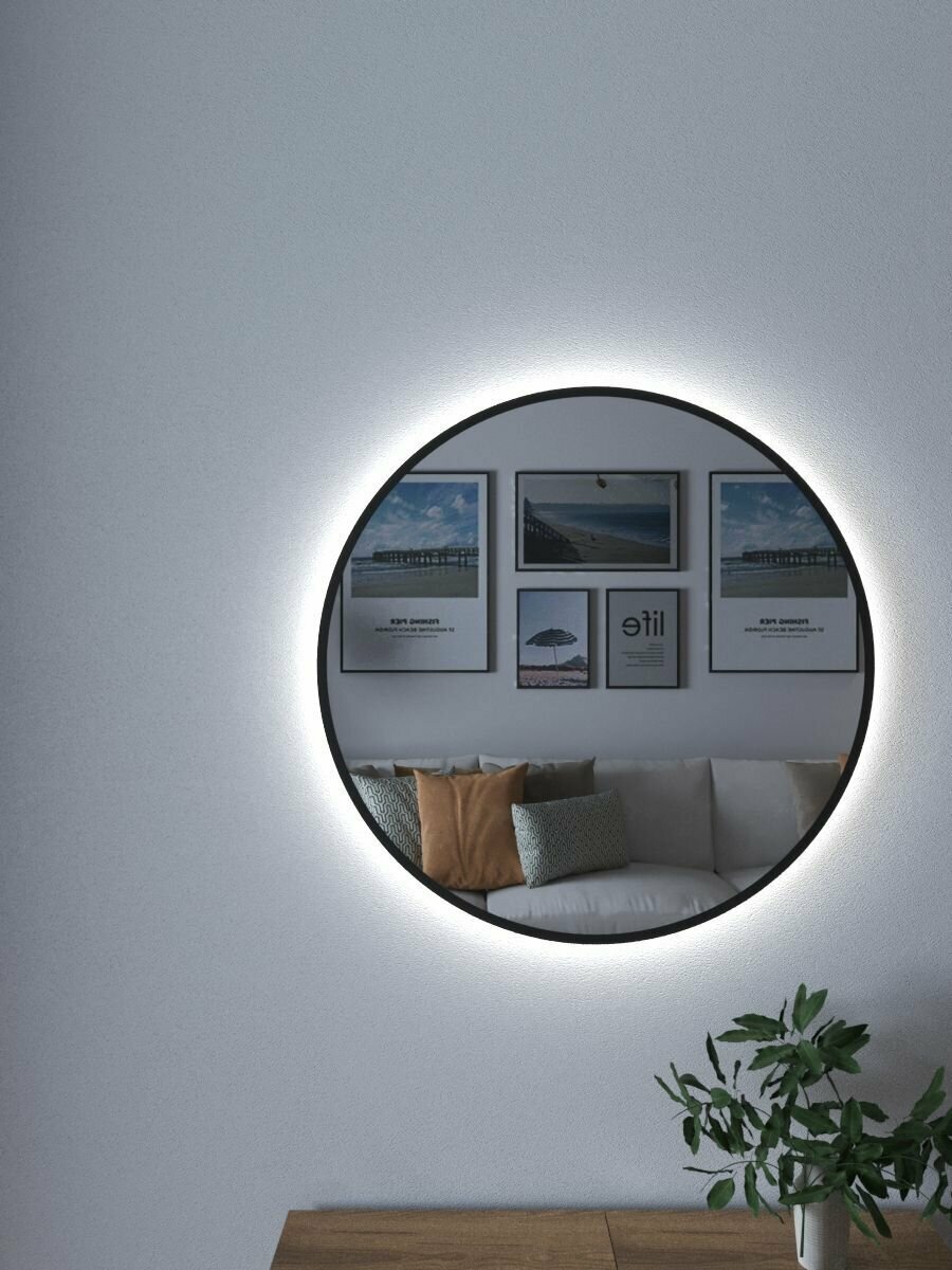 Зеркало настенное с подсветкой и чёрной окантовкой 80 см