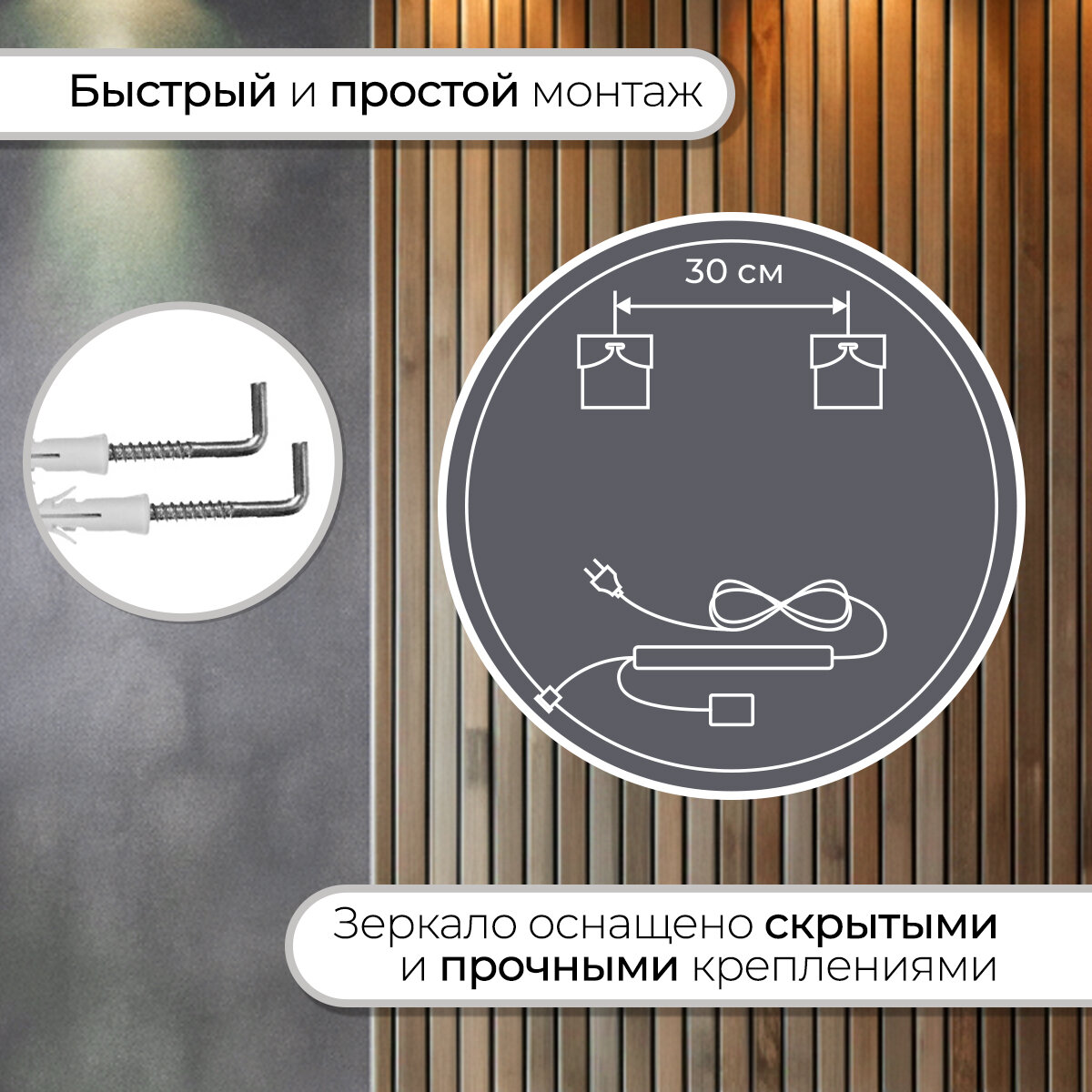 Зеркало 70 см графит настенное с подсветкой, сертифицировано