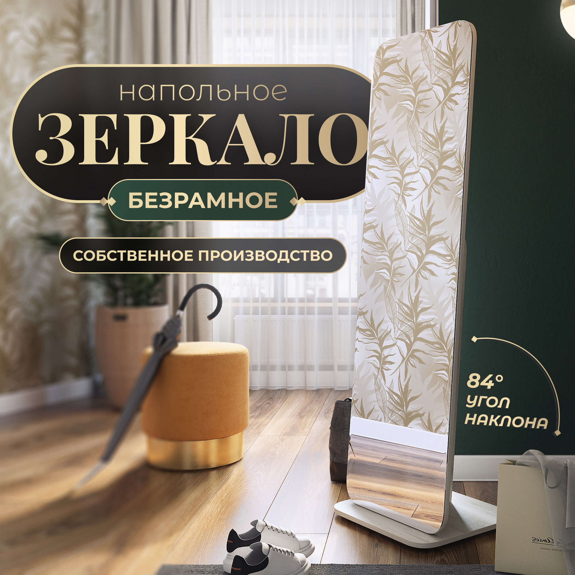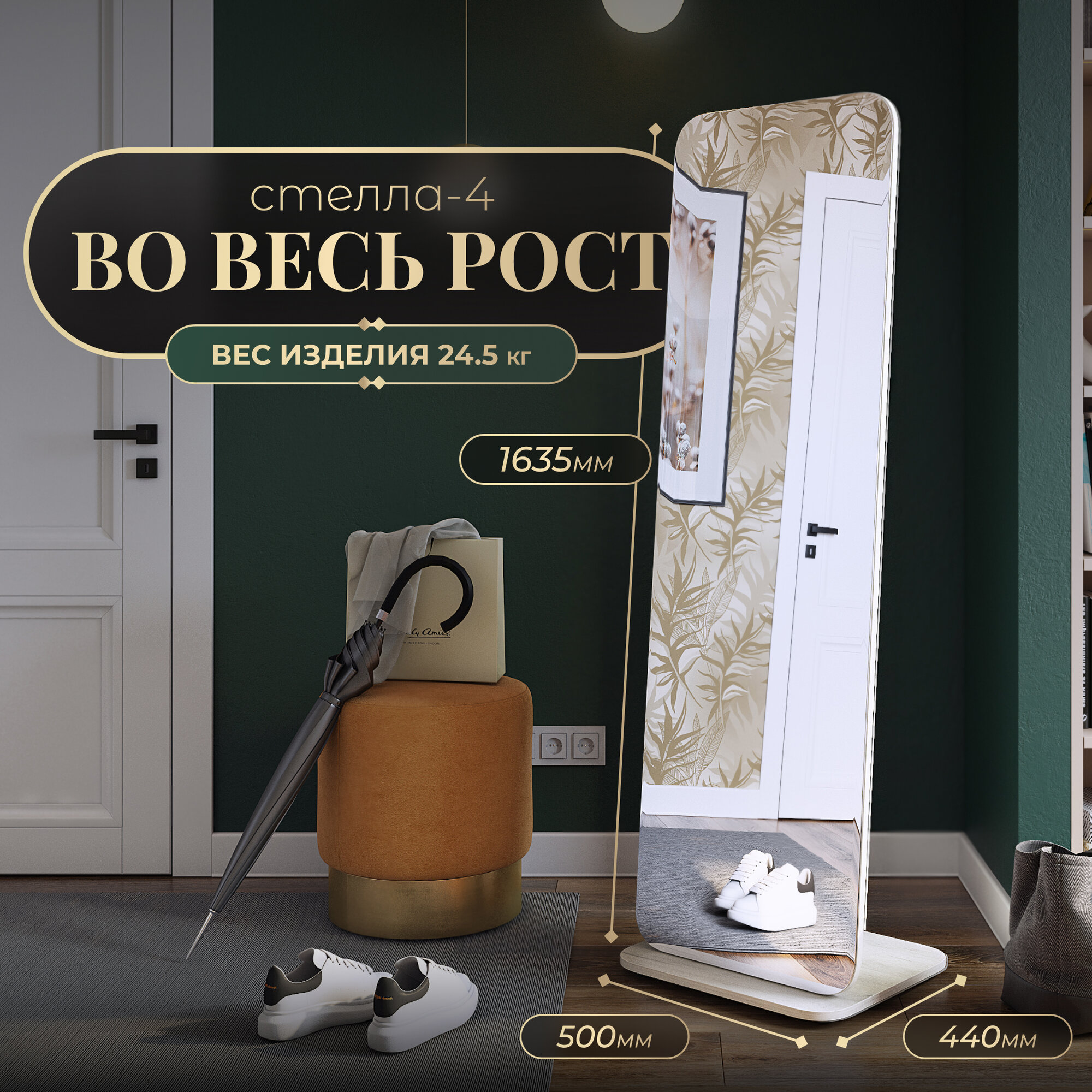 Зеркало интерьерное напольное для спальни, гостиной и прихожей Акрона Стелла-4 дуб крафт белый 163,5 см x 50 см интересное: