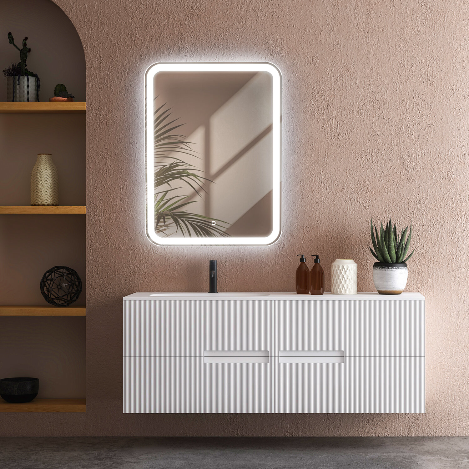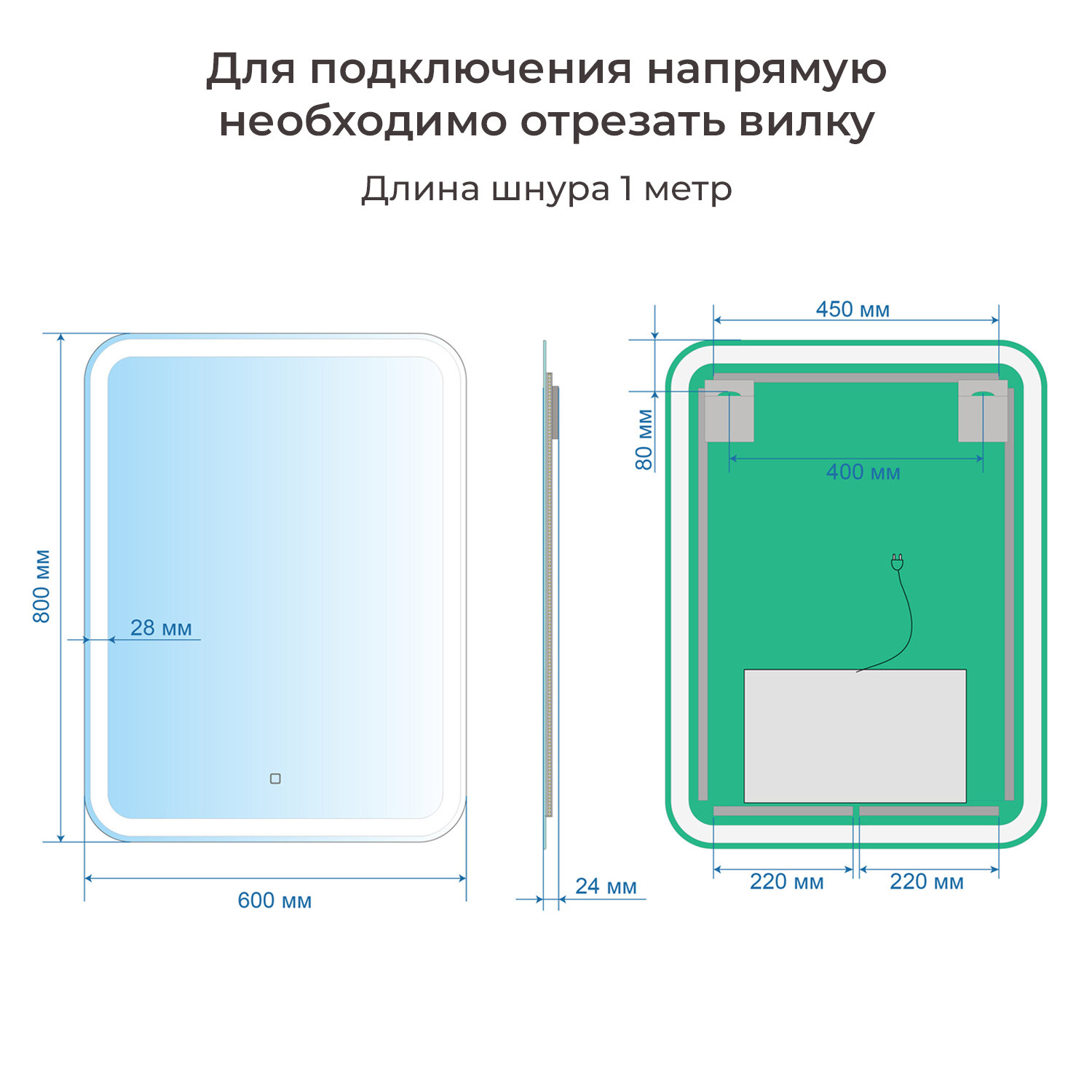 Зеркало настенное для ванной КерамаМане 70*100 см с холодной подсветкой 6000 К с сенсорной кнопкой