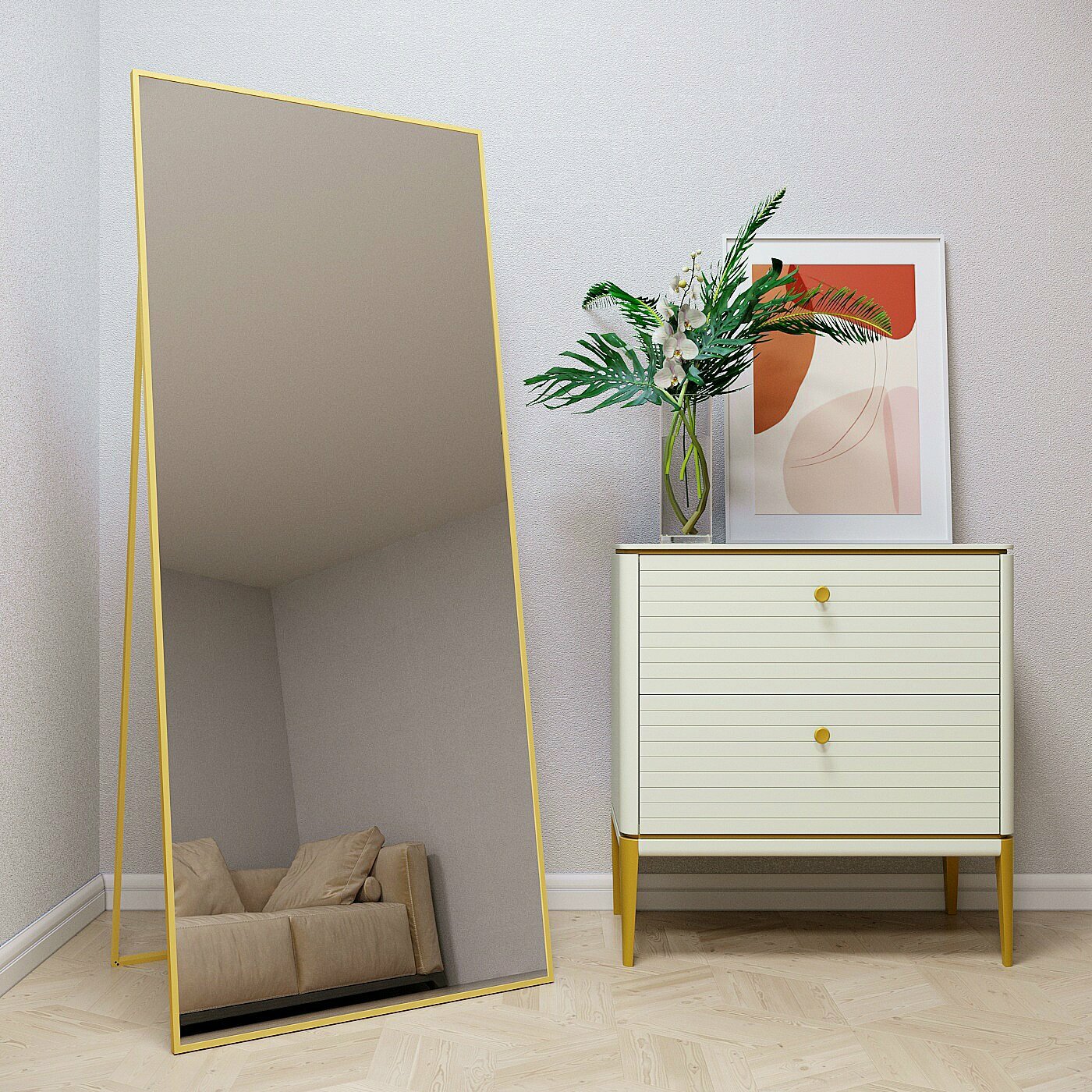 Зеркало напольное в алюминиевой раме Market-house , 160х60 см. Золото