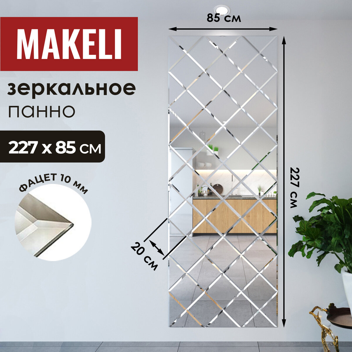 Зеркальное панно Makeli, серебро, квадрат 20x20 см, 255х85 см