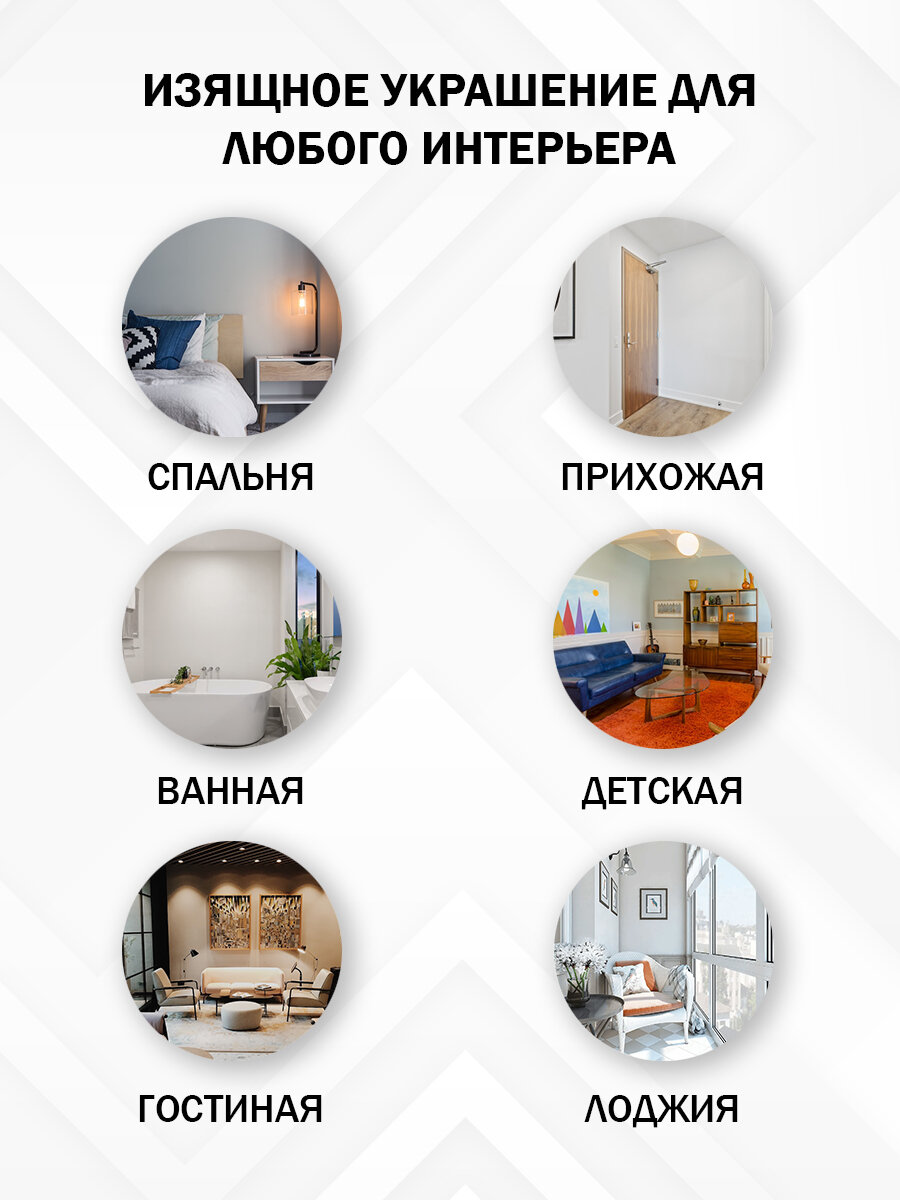 | Особенности | без рамы, зеркальное панно, подсветка, с фацетом |