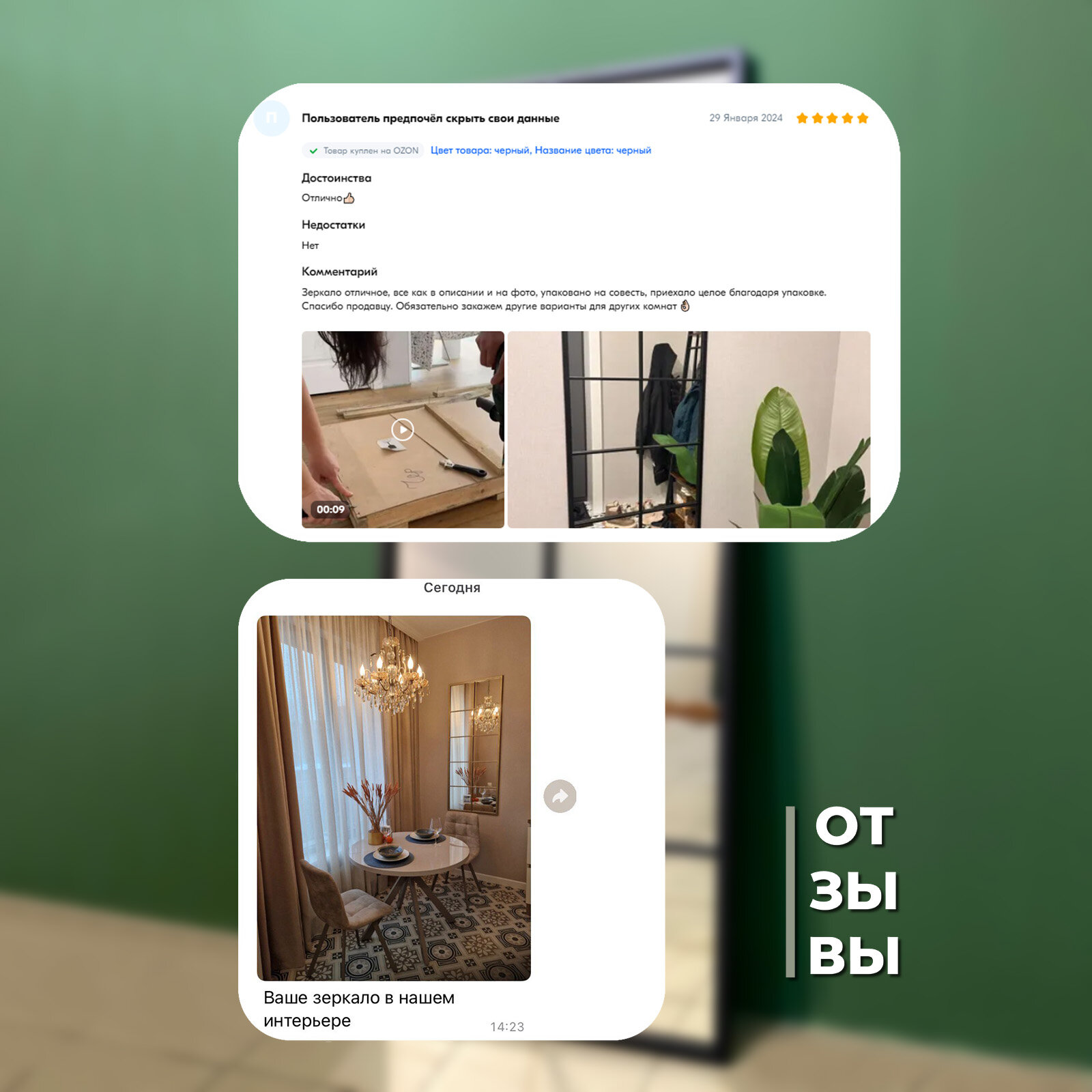 | Комплектация | большое зеркало интерьерное в золотой раме, крепеж для размещения зеркала на стене - 1кт; |