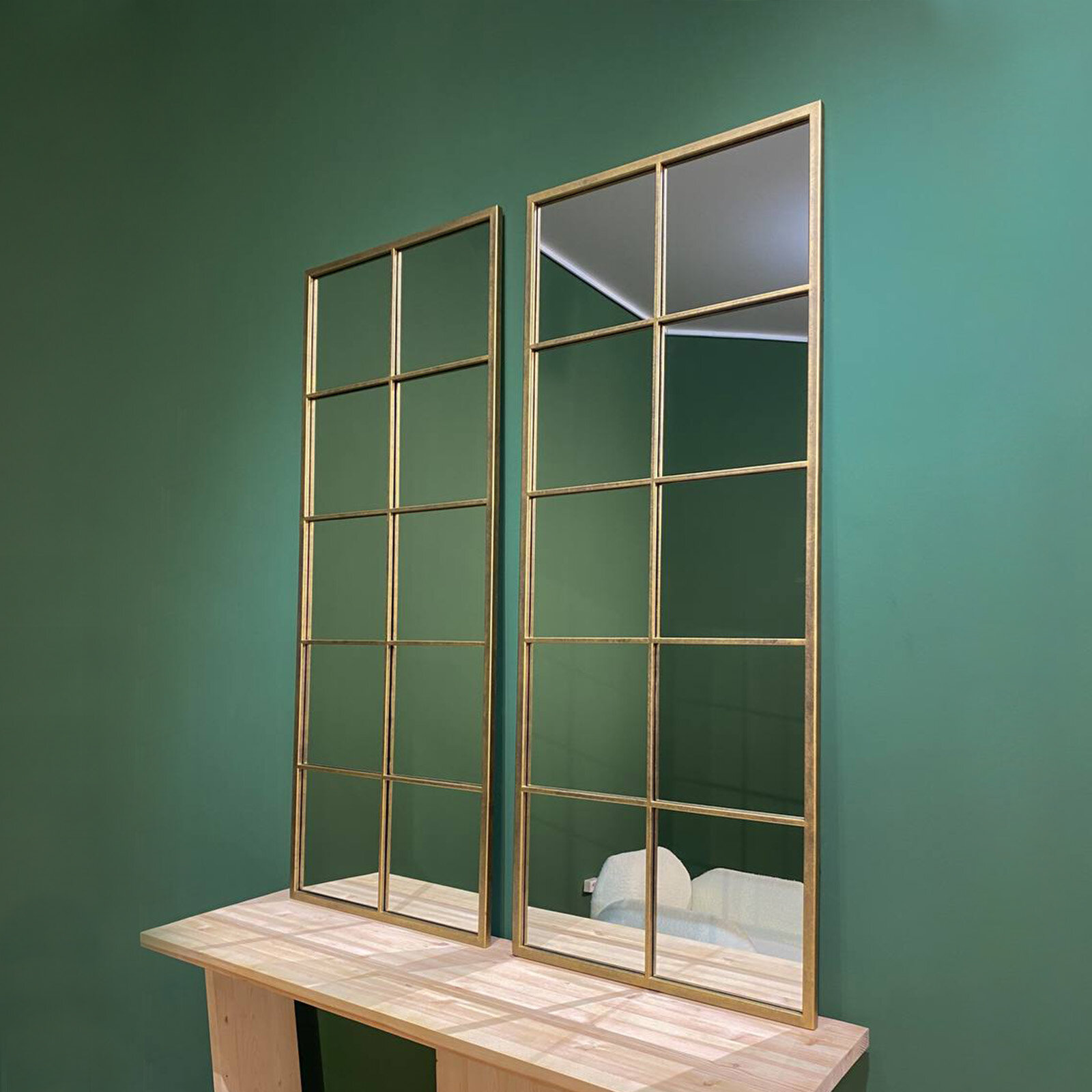 Зеркало настенное интерьерное фальш-окно в золотой раме KOVKA PROJECT, размеры: 150см*60см, цвет: "винтажное золото" интересное: