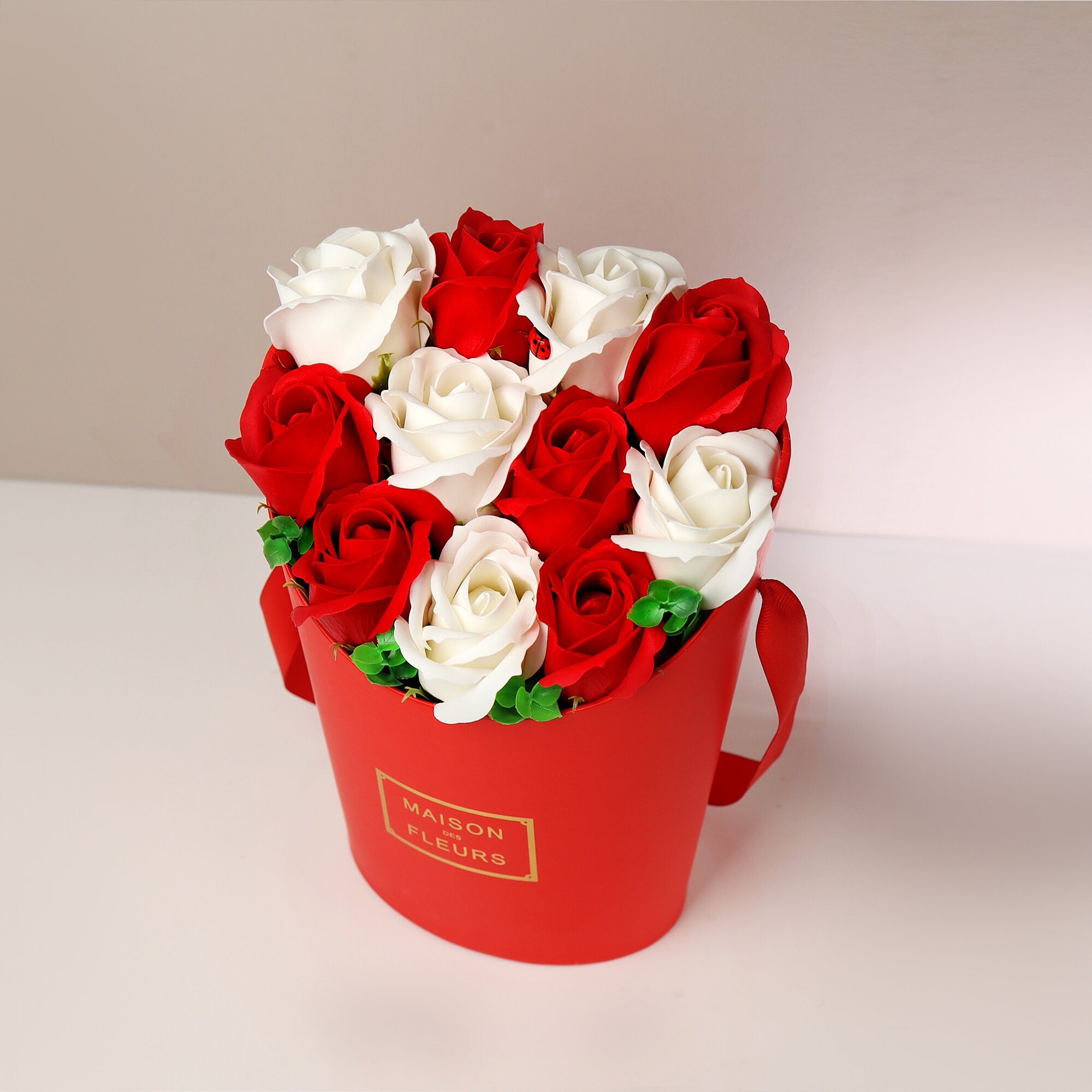 | Дополнительная информация | цветы на мыльной основе, мыльные розы в шляпной коробке из картона |