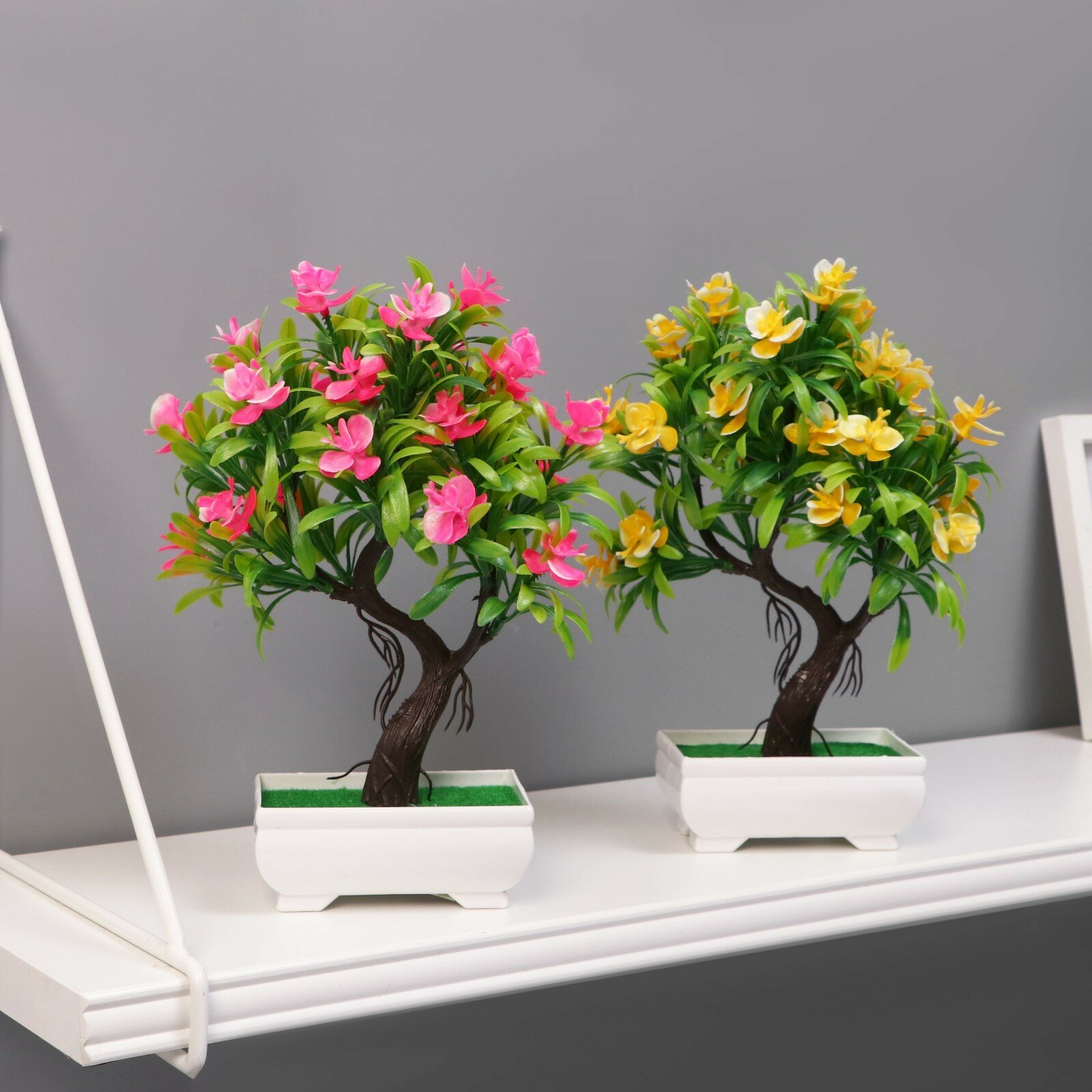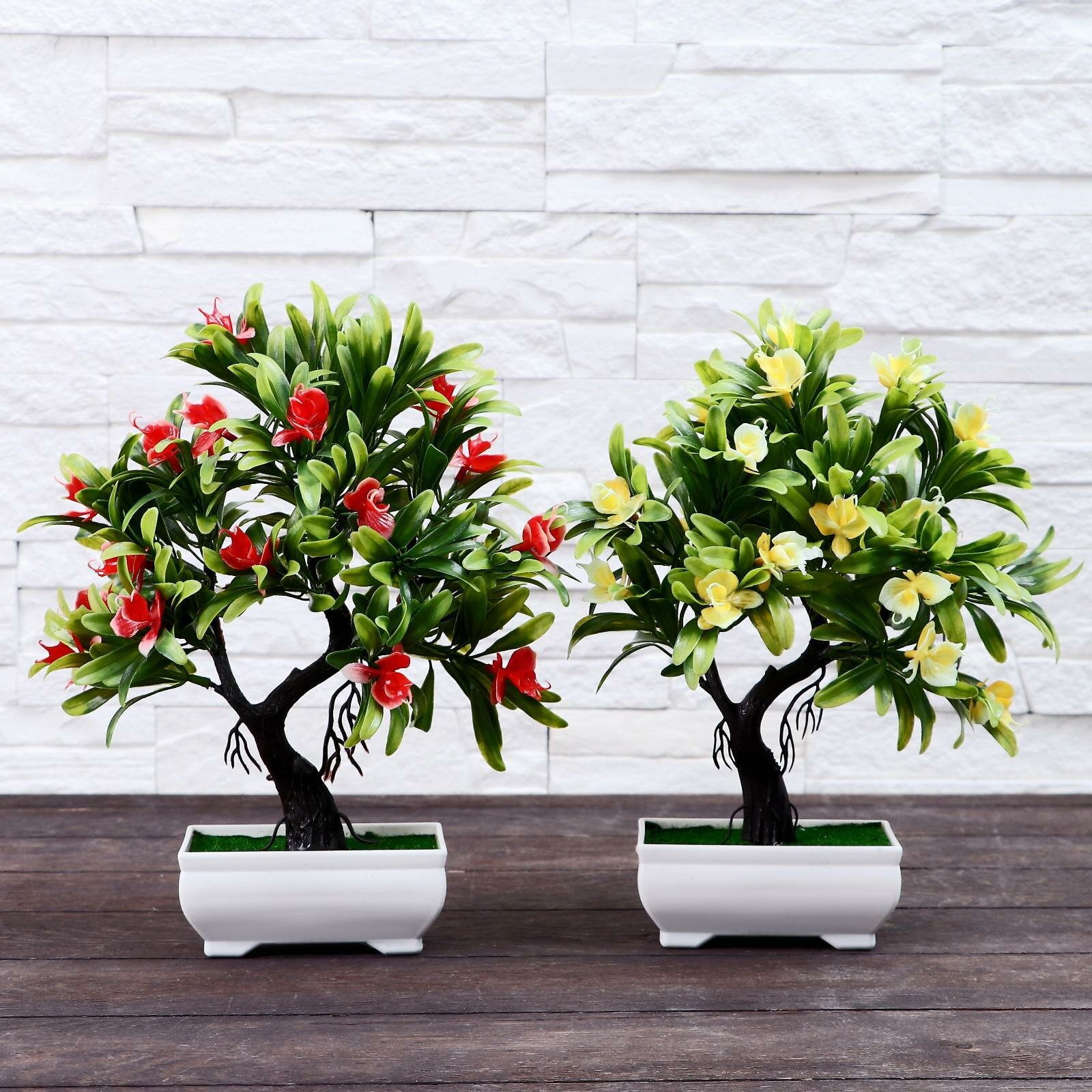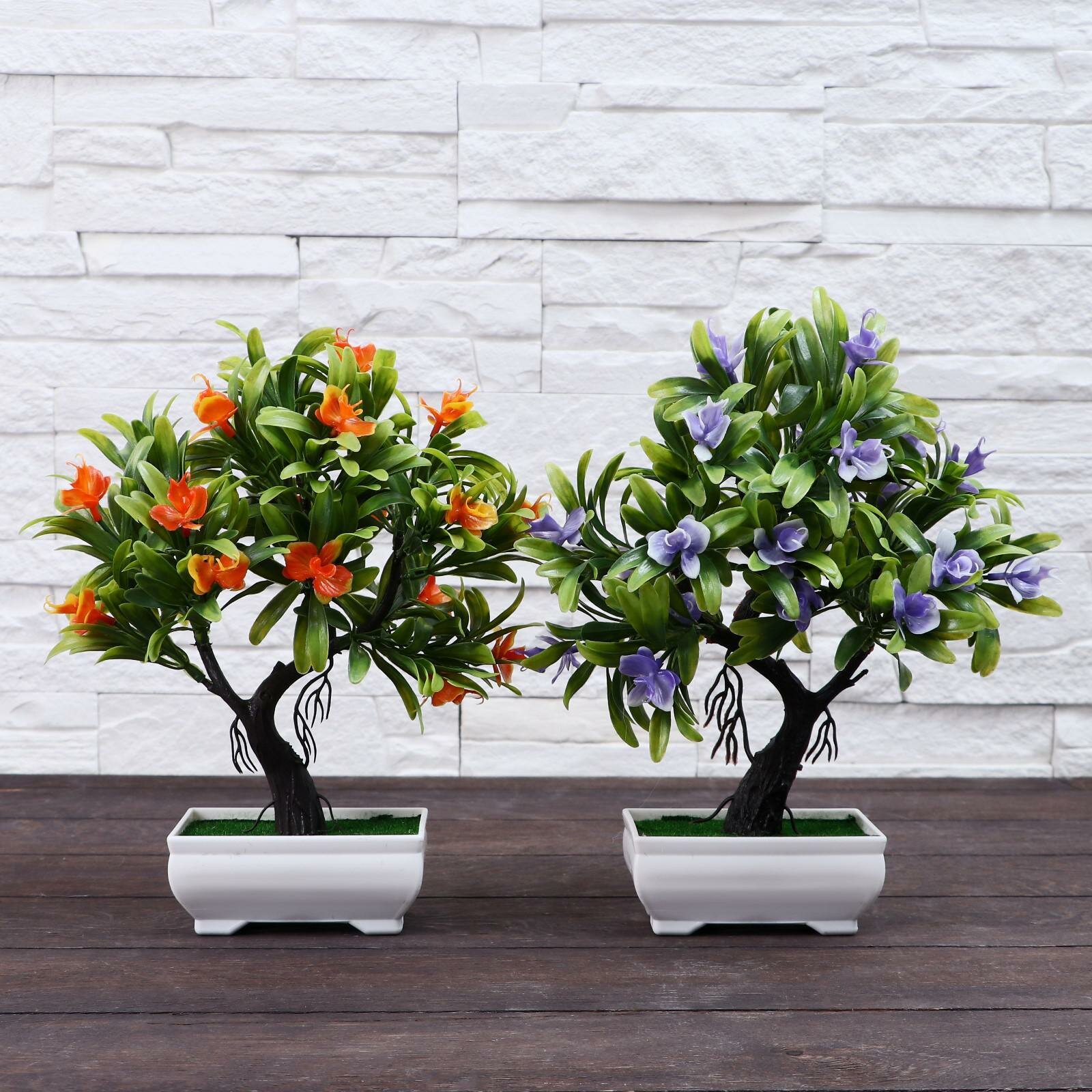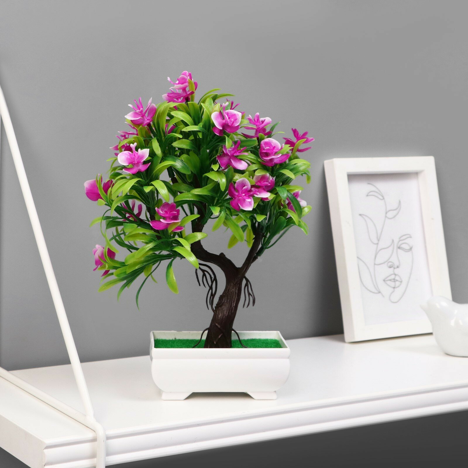 Купить Бонсай в горшке "Деревце с тонкими листьями и цветами" 10х24 см, микс 4142812