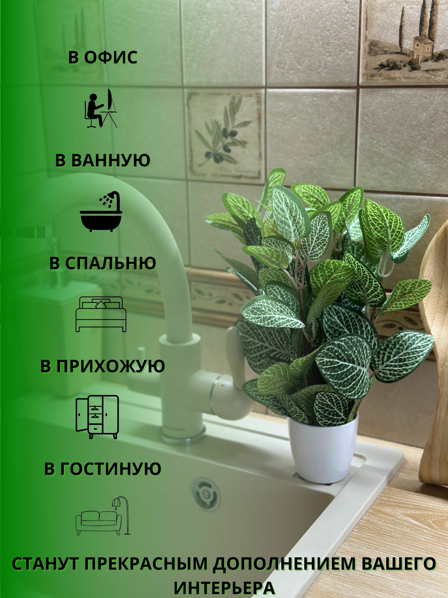 Искусственная фиттония в горшке / Искусственные цветы для декора в кашпо