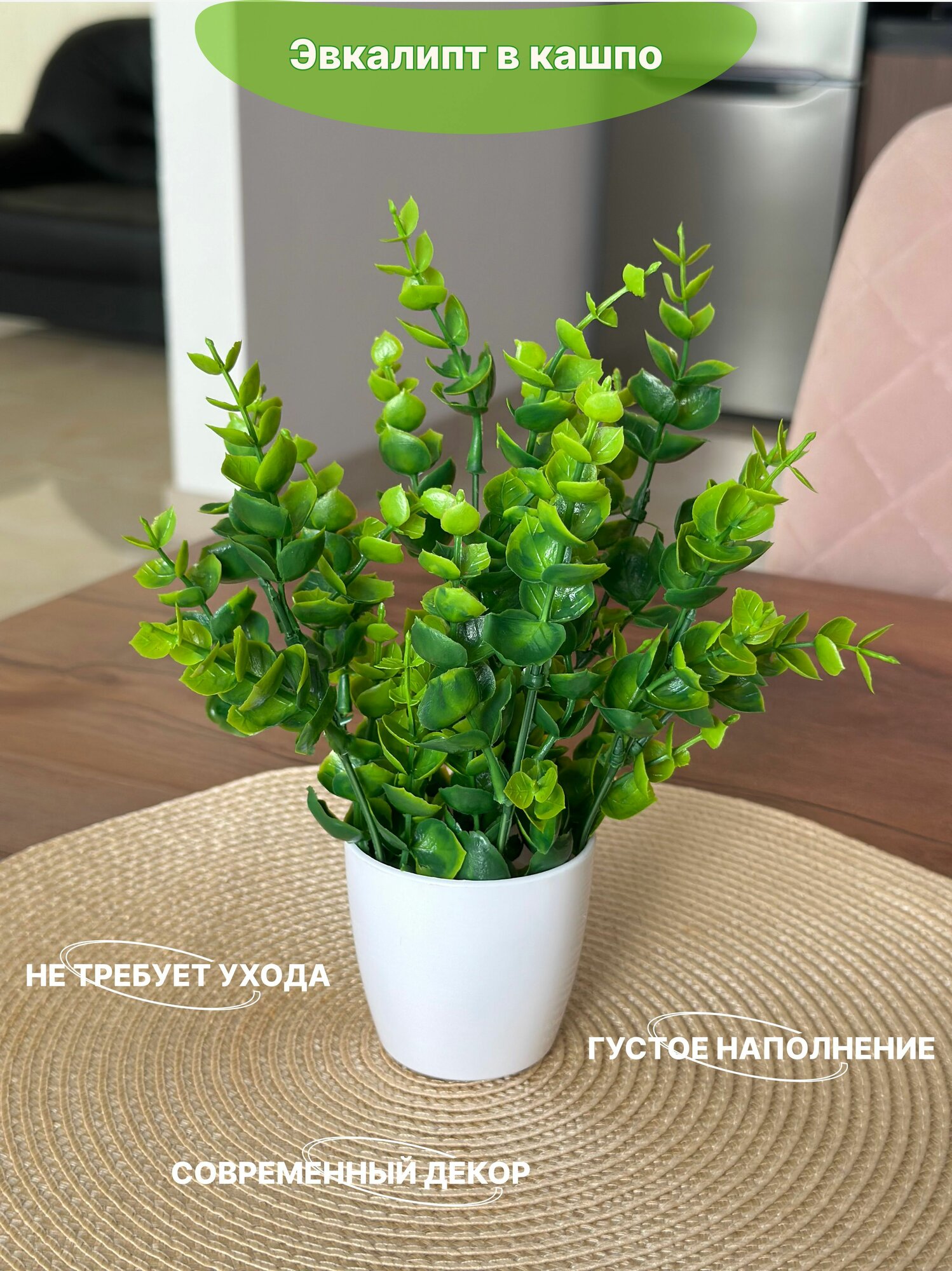 Искусственные цветы Эвкалипт в горшке Высота 22 см / Декор для дома