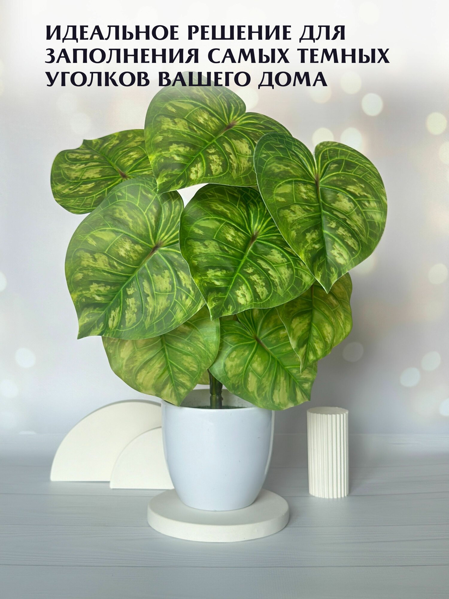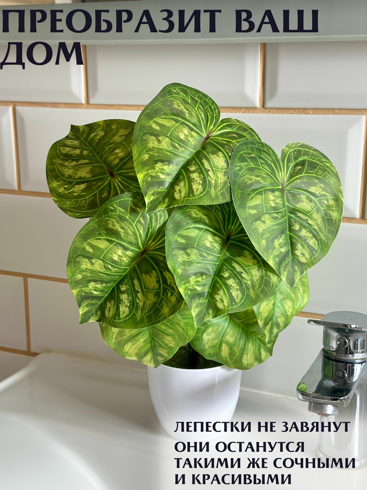 Искусственные декоративные цветы Алоказия в горшке / Искусственные цветы для декора в кашпо
