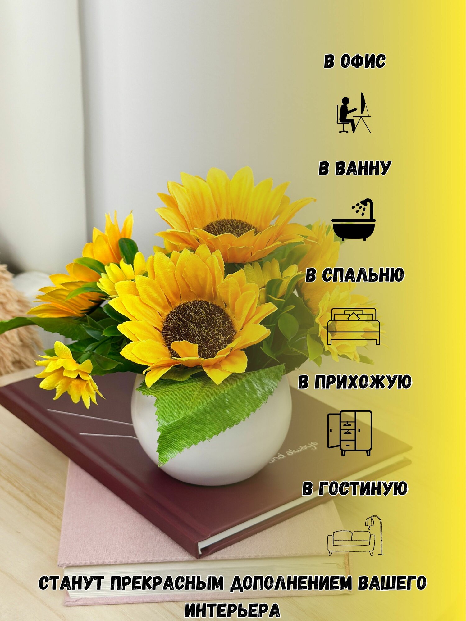 Искусственный декоративный подсолнух в горшке / Искусственные цветы для декора в кашпо