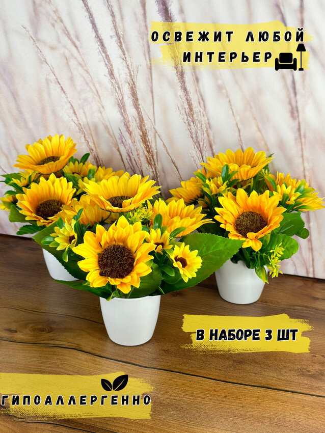 Купить Искусственные цветы подсолнухи в горшке 3 шт