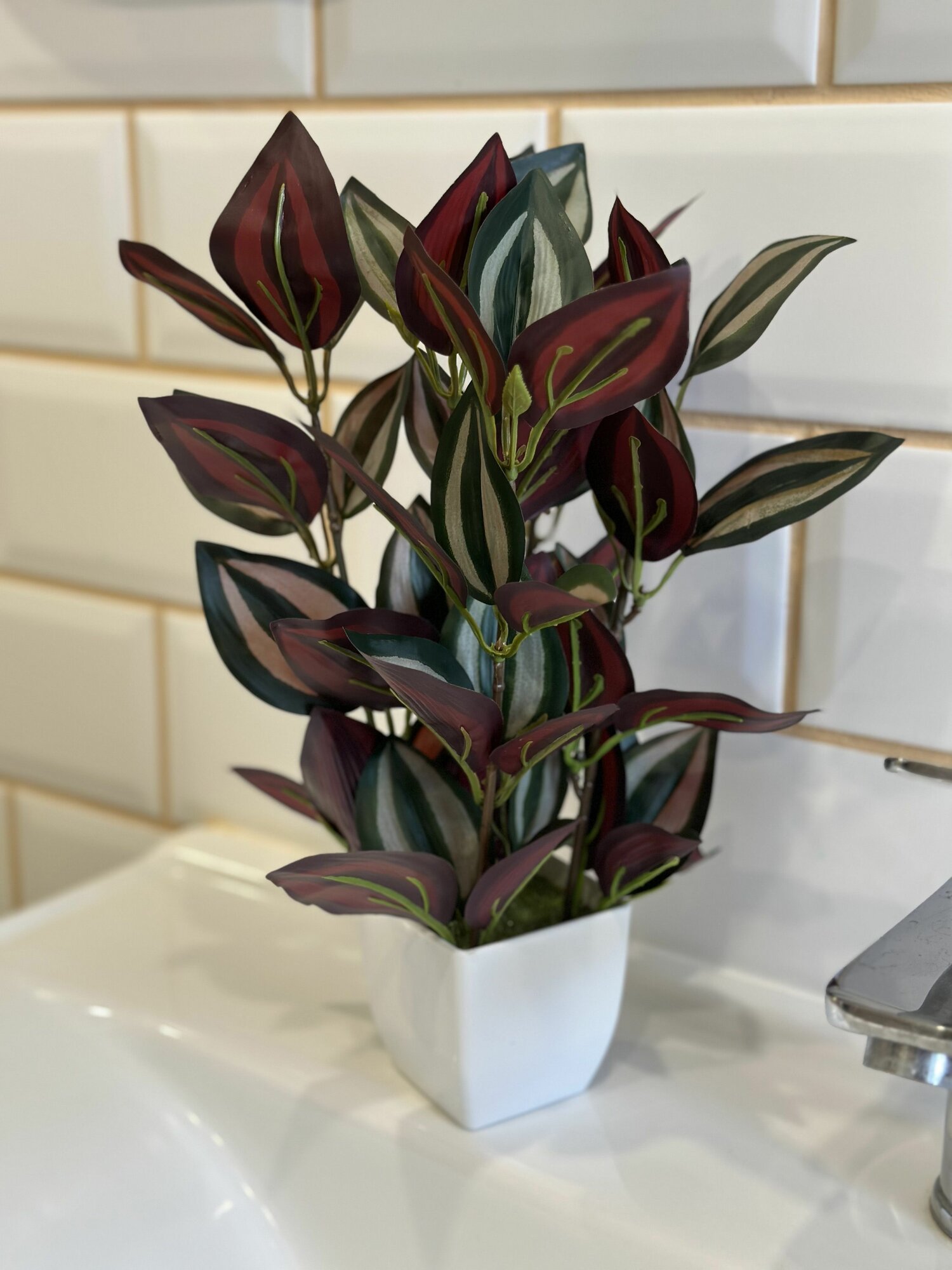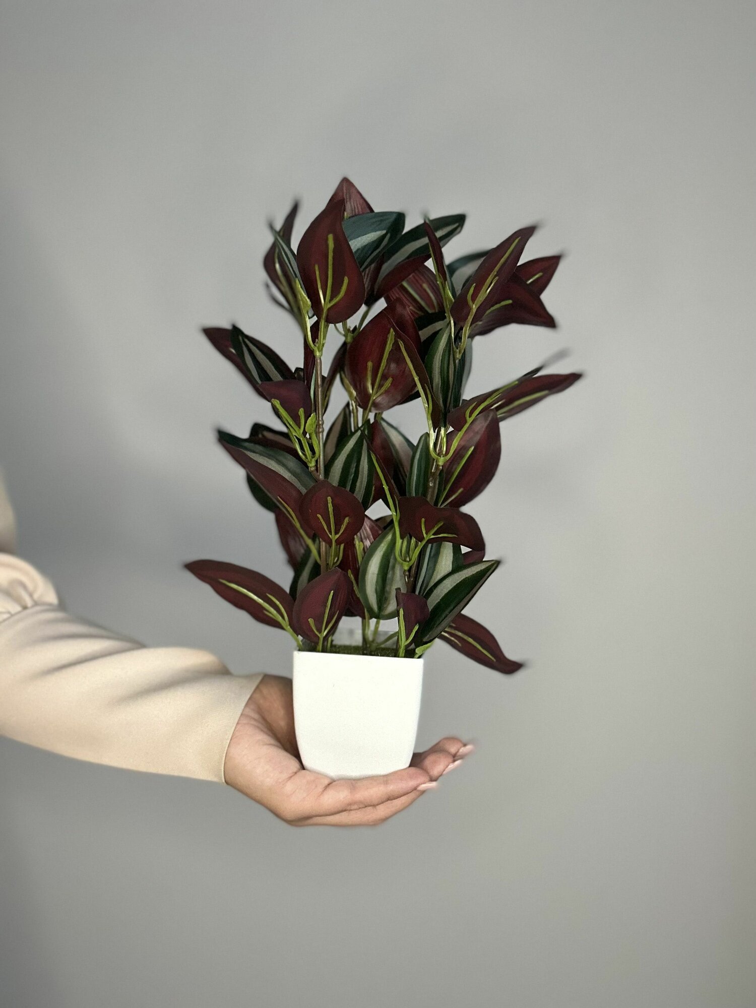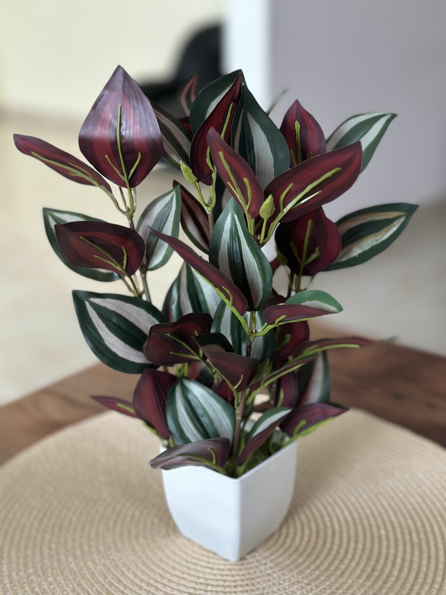Искусственная Калатея в горшке / Искусственные цветы для декора в кашпо