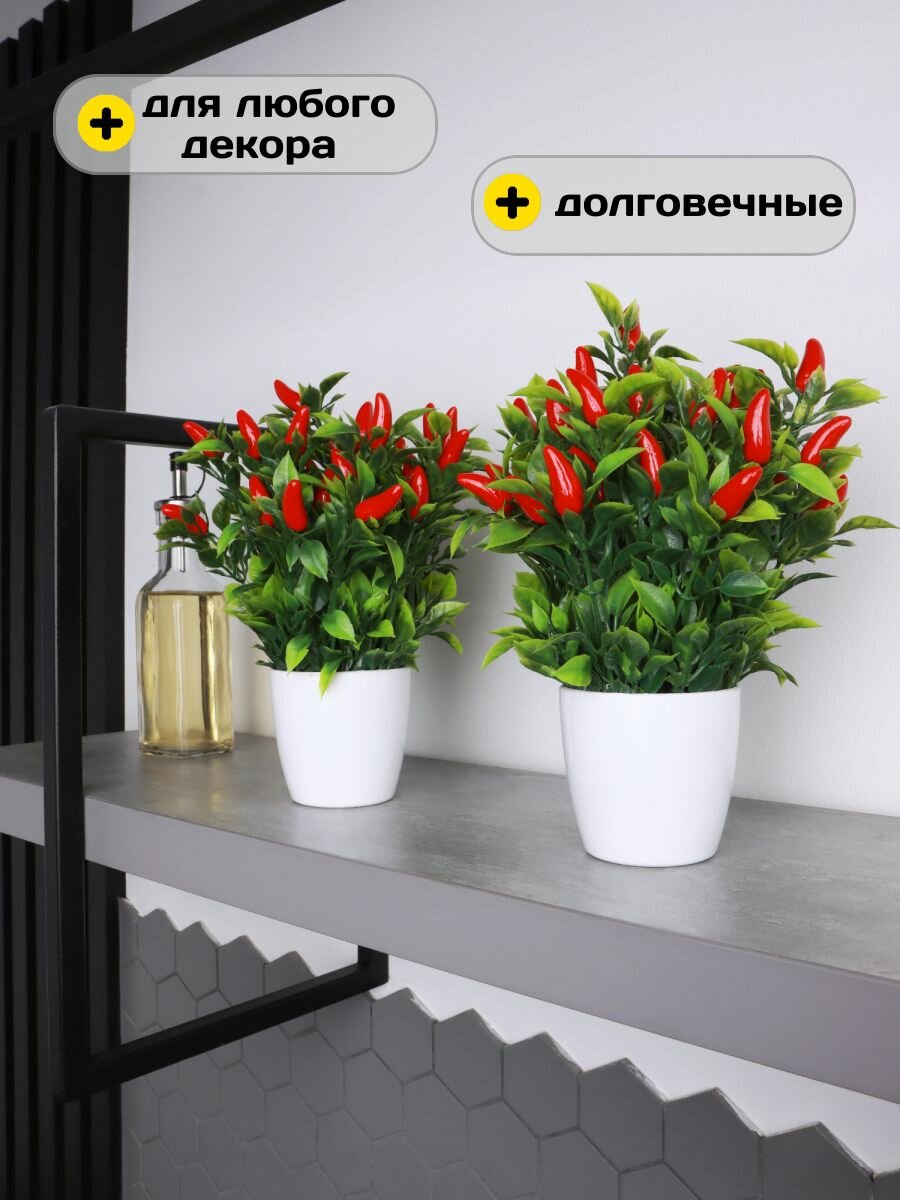 Купить Искусственные цветы в горшке перец в кашпо для декора набор 3 шт