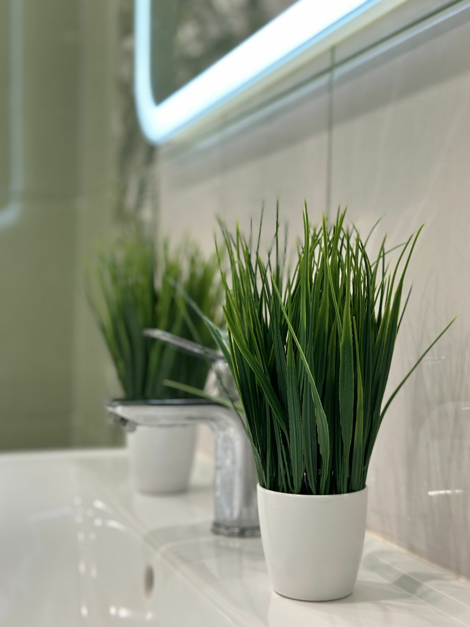 Искусственные цветы в горшке Осока и Ландыши в кашпо для декора набор из 2 штук
