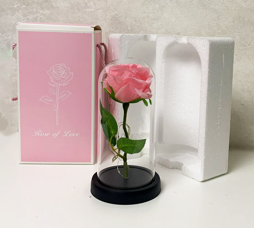 Роза из искусственного шелка в стекле со светодиодной подсветкой, подарок женщине / розовая