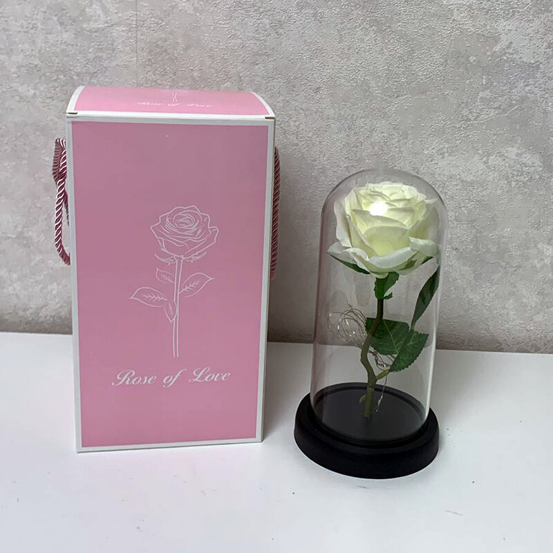 Роза из искусственного шелка в стекле со светодиодной подсветкой, подарок женщине / белая