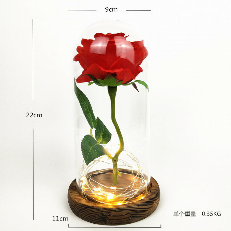 | Подробная комплектация | роза - искусственный шелк, колба - стекло, подставка дерево, подсветка - светодиодная нить |