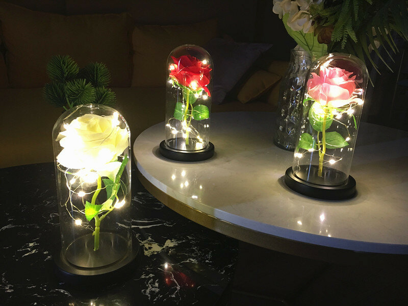 Роза из искусственного шелка в стекле со светодиодной подсветкой, подарок женщине / красная интересное: