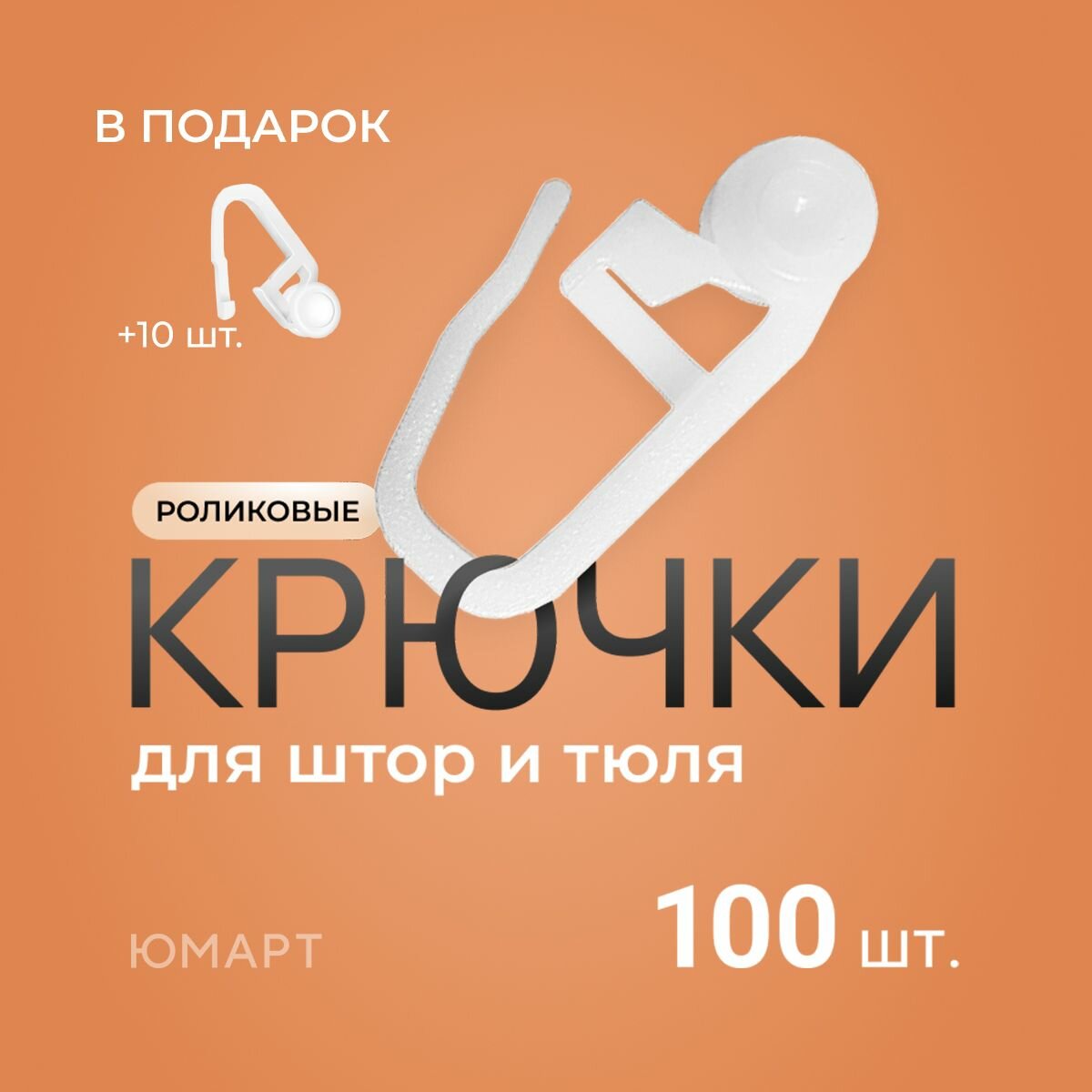 Купить Крючки ролиликовые для штор, тюли, портьер, потолочного карниза, 100 шт. + 10 шт., белые крючки-ролики