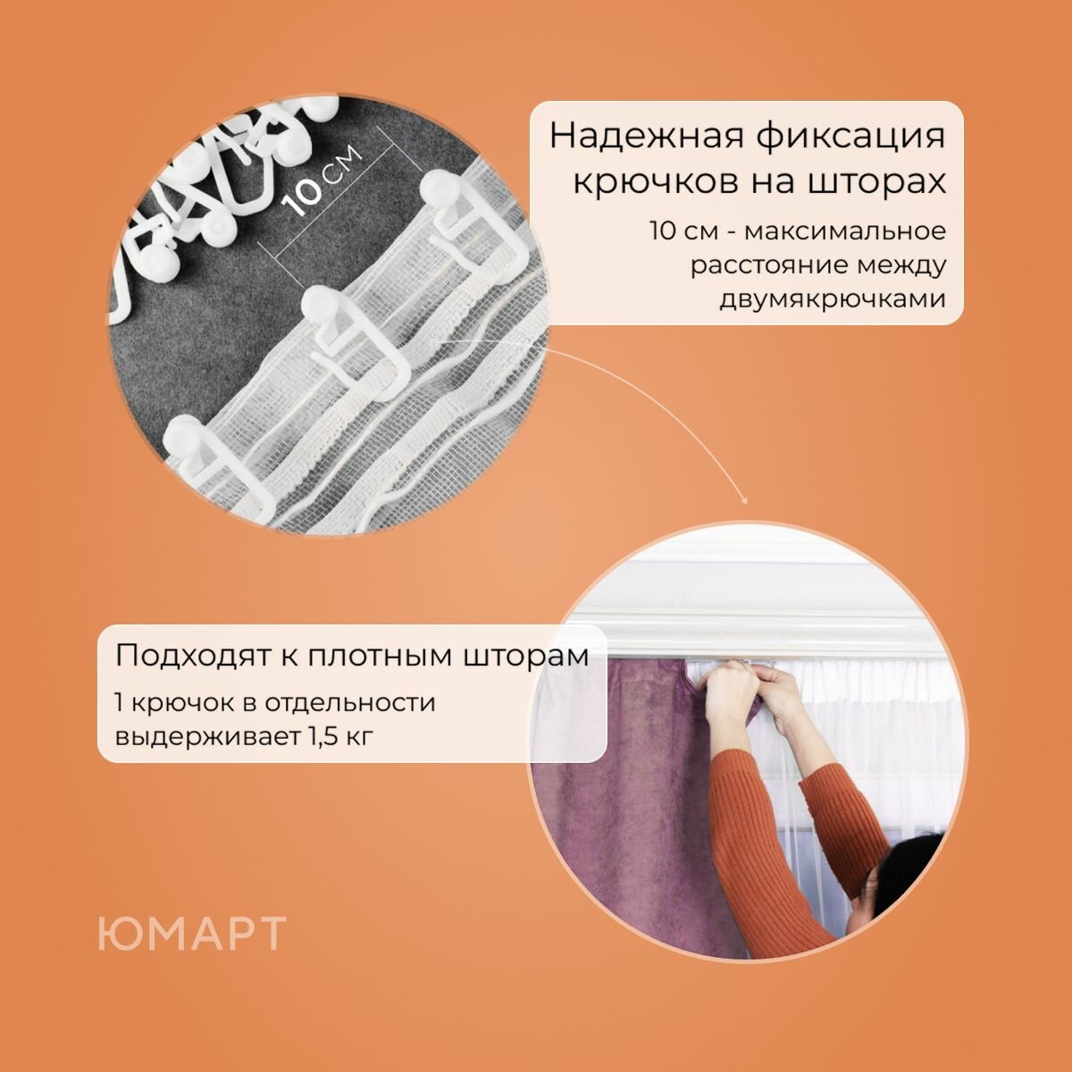 Крючки ролиликовые для штор, тюли, портьер, потолочного карниза, 100 шт. + 10 шт., белые крючки-ролики интересное: