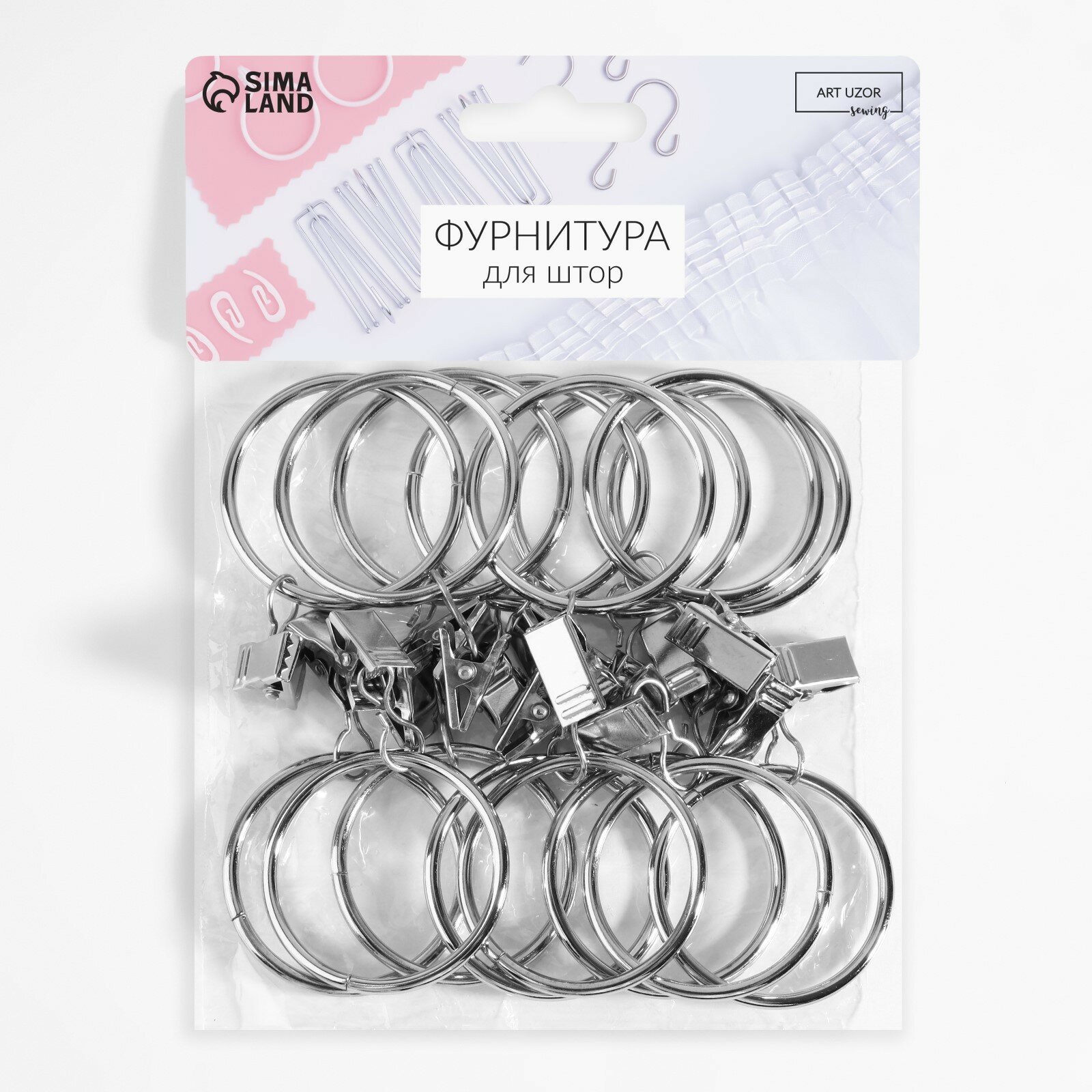 Кольцо для карниза, с зажимом, d - 37/44 мм, 20 шт, цвет серебряный интересное: