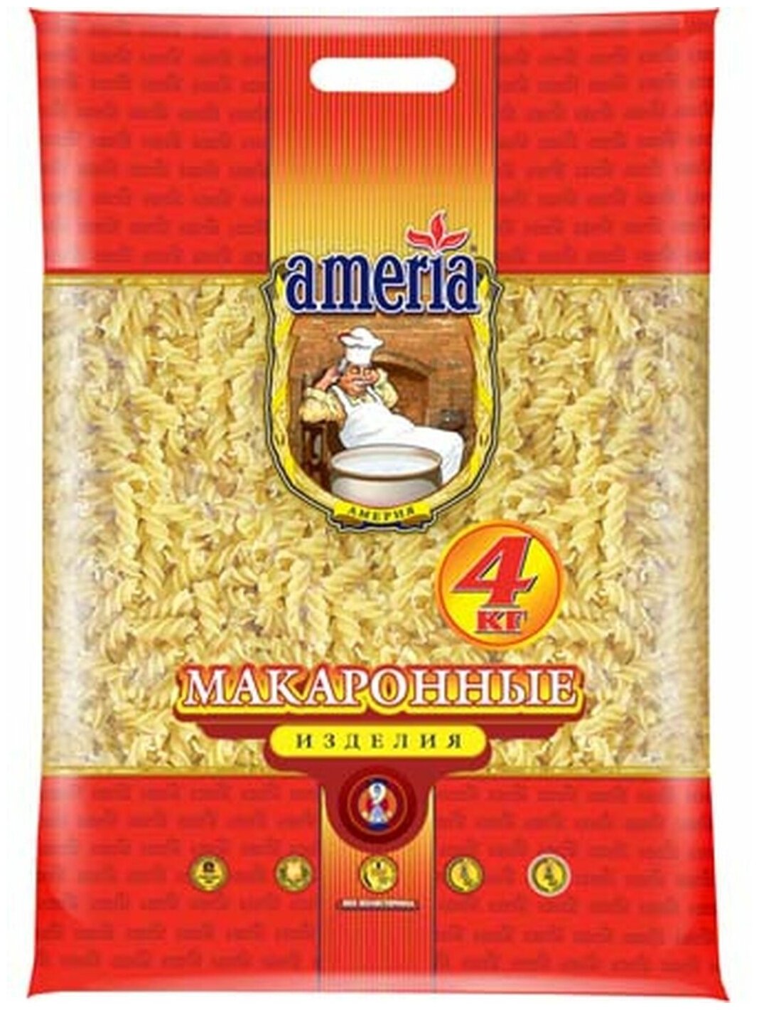 Макароны Ameria №42 спиральки, 4кг, 1 шт.