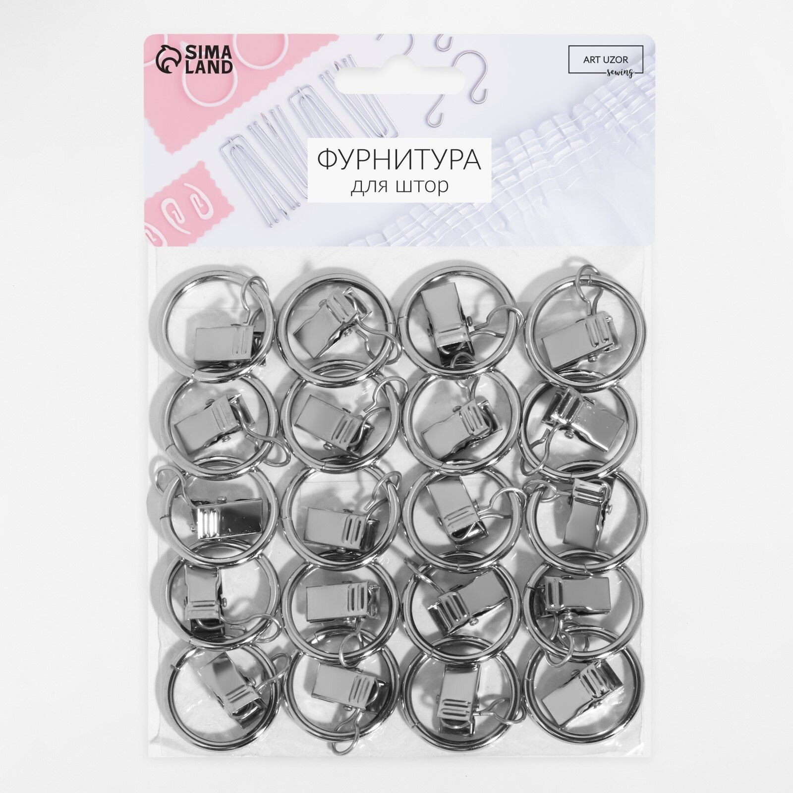 Кольцо для карниза, с зажимом, d = 23/30 мм, 20 шт, цвет серебряный (арт. 1212529)