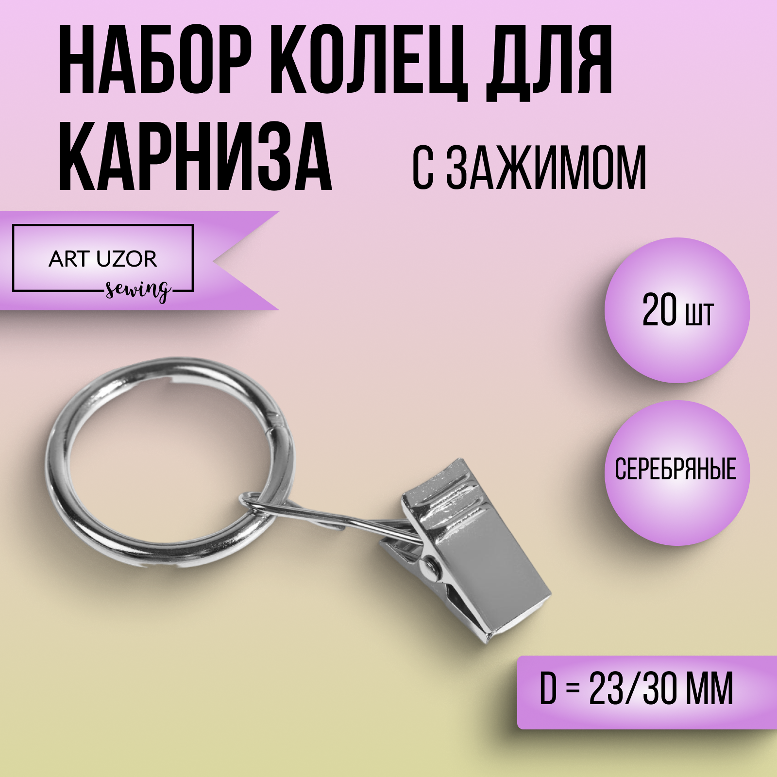 Кольцо для карниза, с зажимом, d = 23/30 мм, 20 шт, цвет серебряный