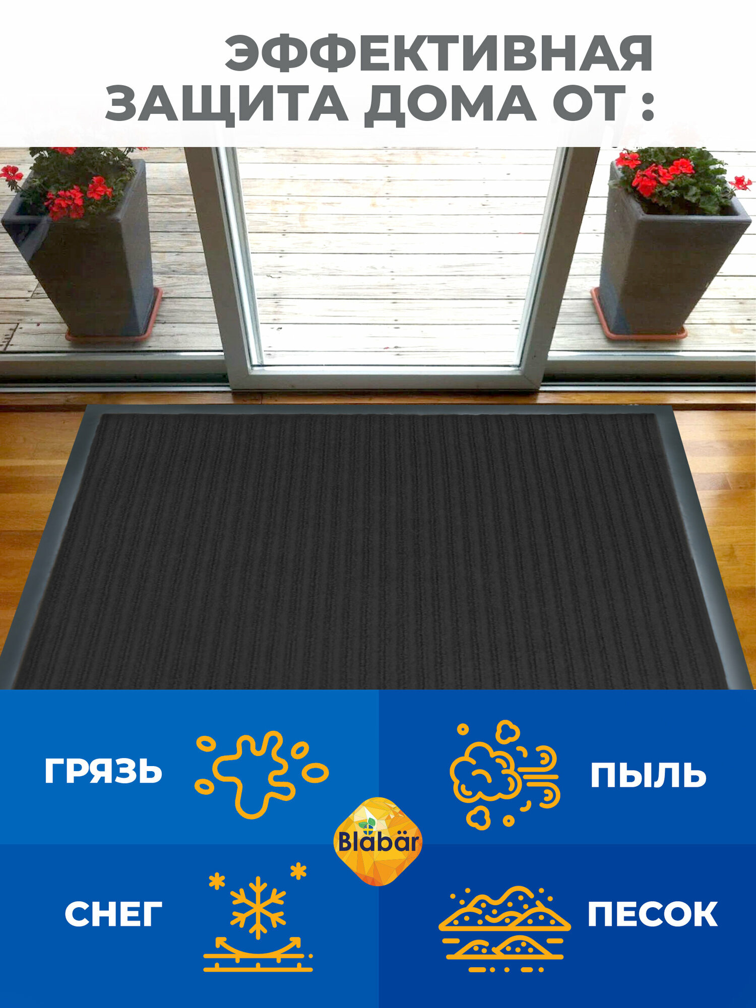 Коврик придверный в прихожую грязезащитный Blabar 60х90