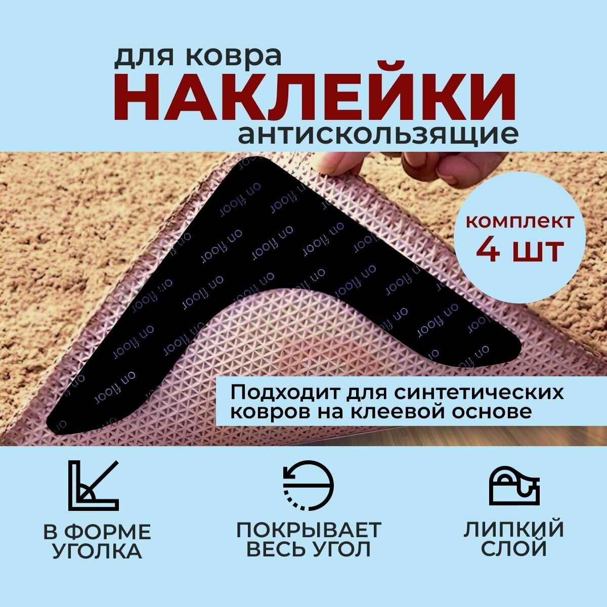 Наклейки антискользящие самоклеящиеся 4 штуки на ковры. Фиксаторы для ковра клеевые. Самоклеящаяся липучка. FULL Home интересное: