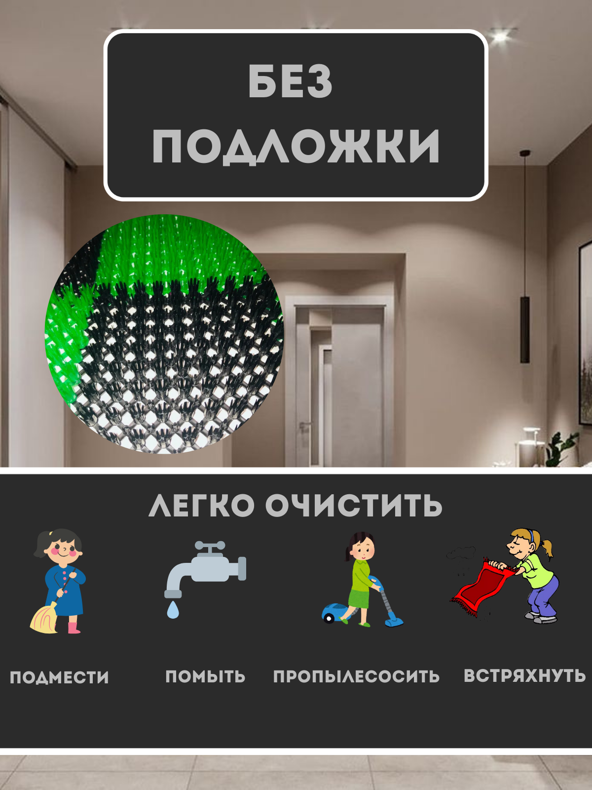 Коврик Травка 42х56 см чёрно-зелёный интересное: