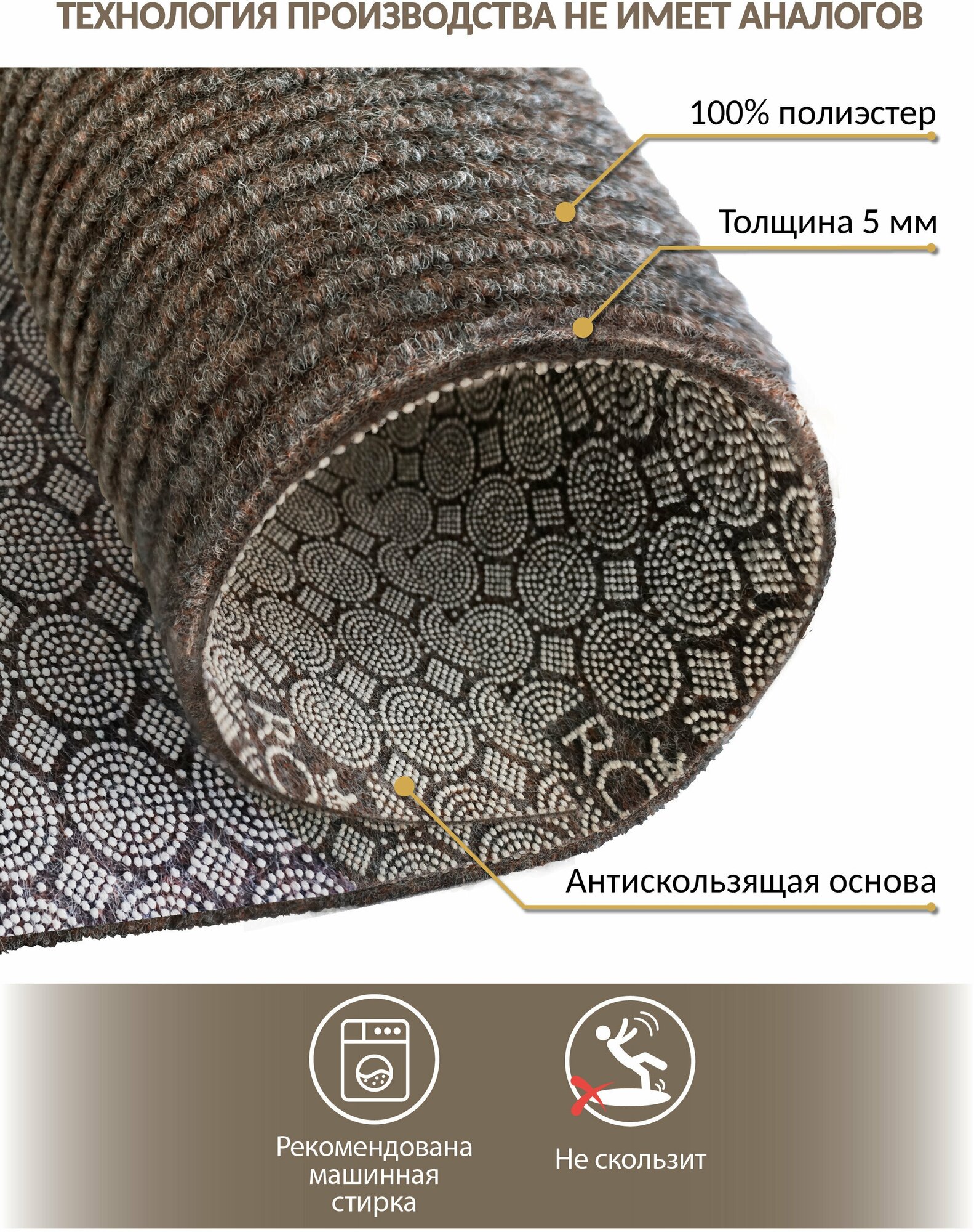 Коврик вырезной придверный icarpet практик антискользящий влаговпитывающий 150х200 мокко
