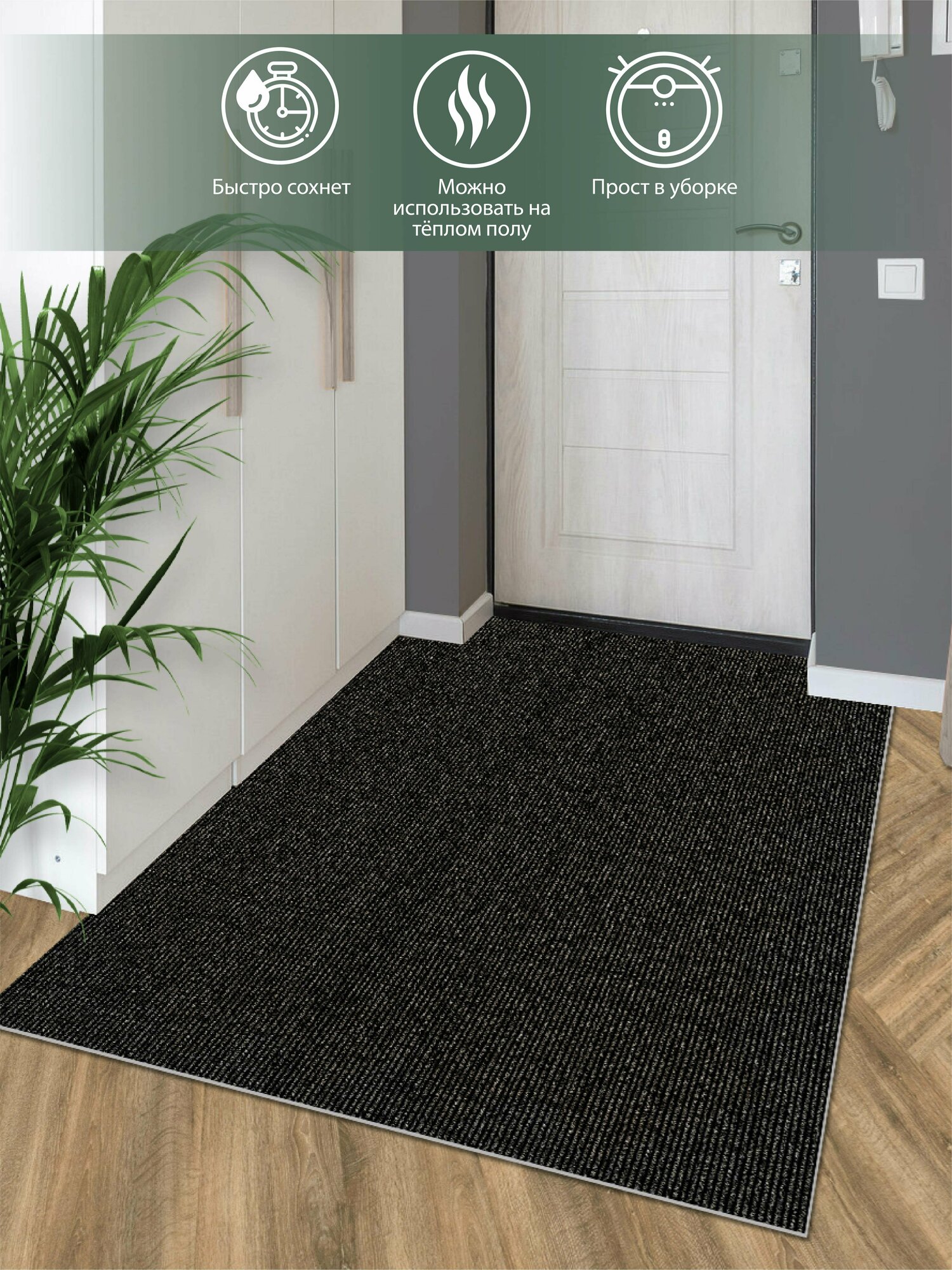 Коврик вырезной придверный icarpet практик антискользящий влаговпитывающий 80х120, черный