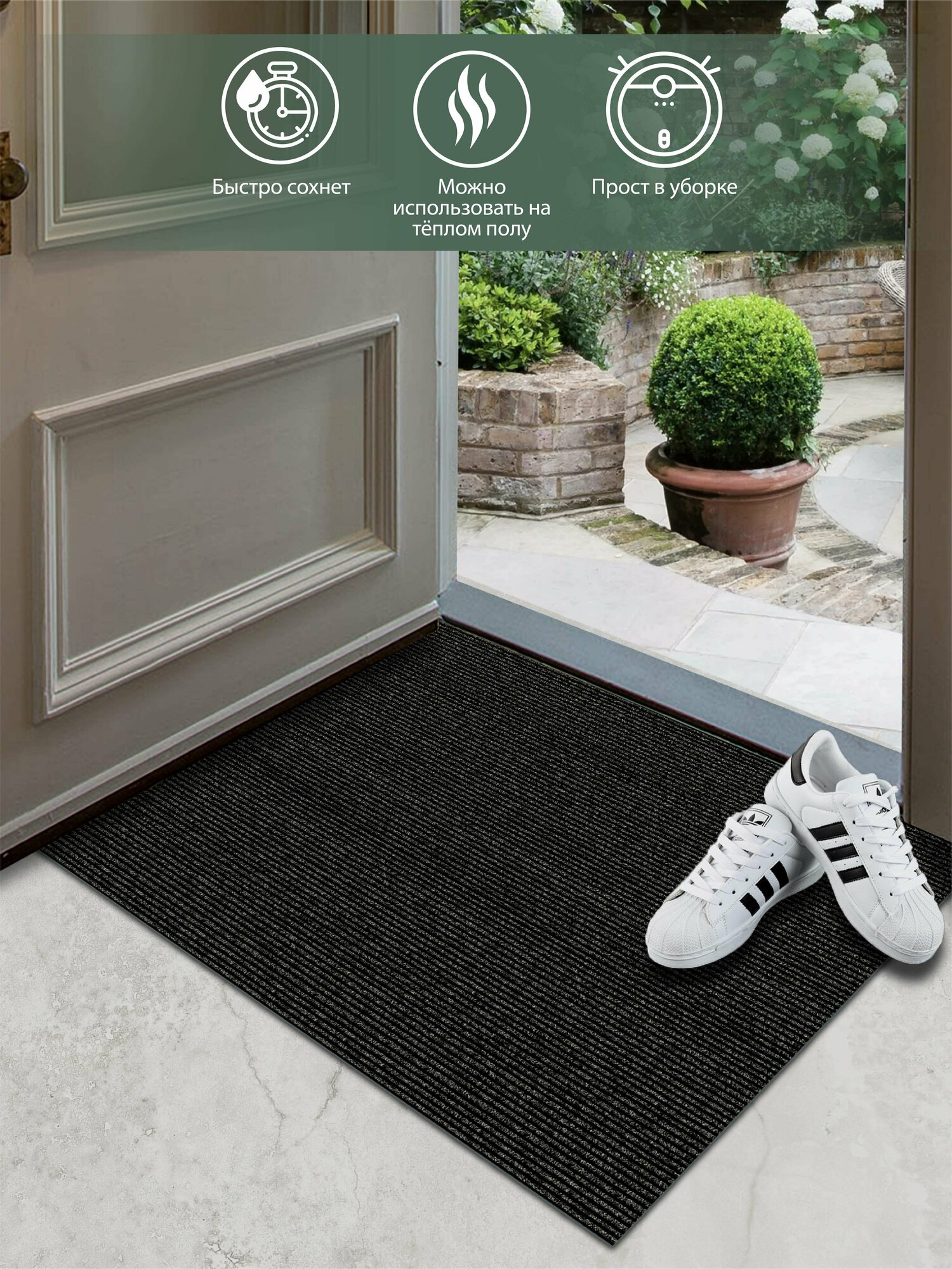 Коврик вырезной придверный icarpet практик антискользящий влаговпитывающий 60х90, черный