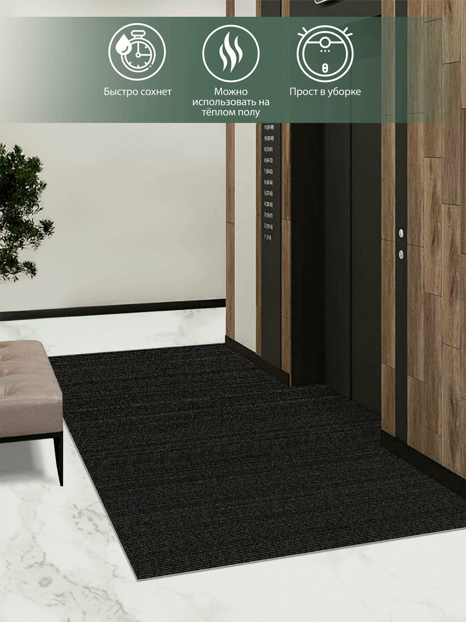 Коврик вырезной придверный icarpet практик антискользящий влаговпитывающий 80х120, черный