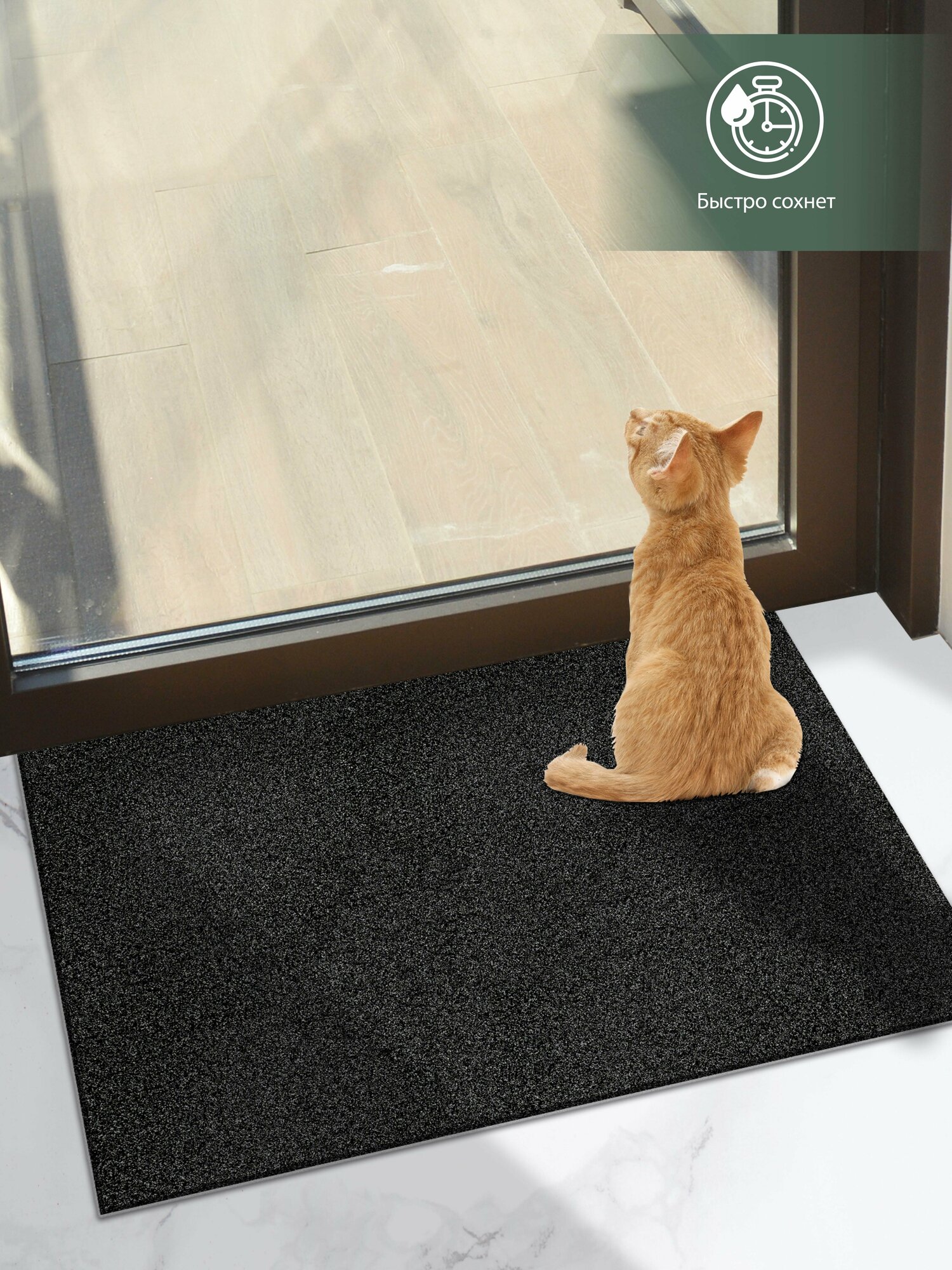 Коврик вырезной придверный icarpet практик антискользящий влаговпитывающий 60х90, черный