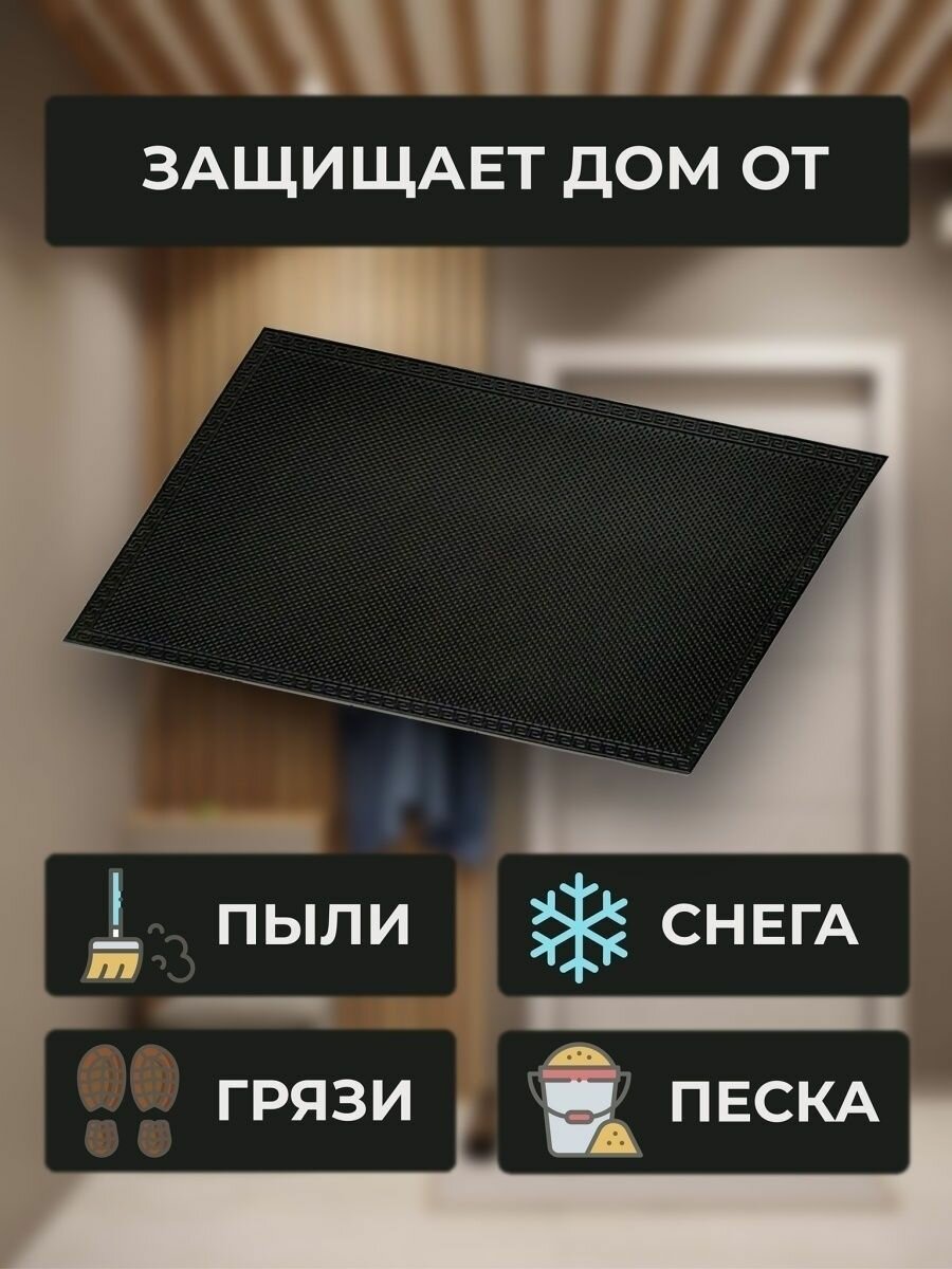 Коврик придверный резиновый в прихожую для обуви и входной двери черный. Коврик дверной 40х60 см в коридор на пол для прихожей на резиновой основе.