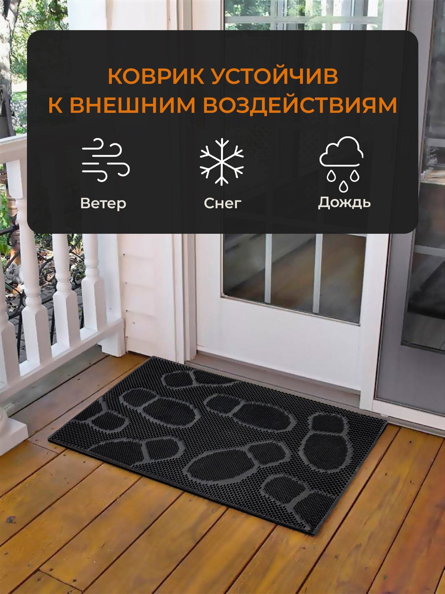 Коврик резиновый придверный черный с рисунком "Следы" 40х60
