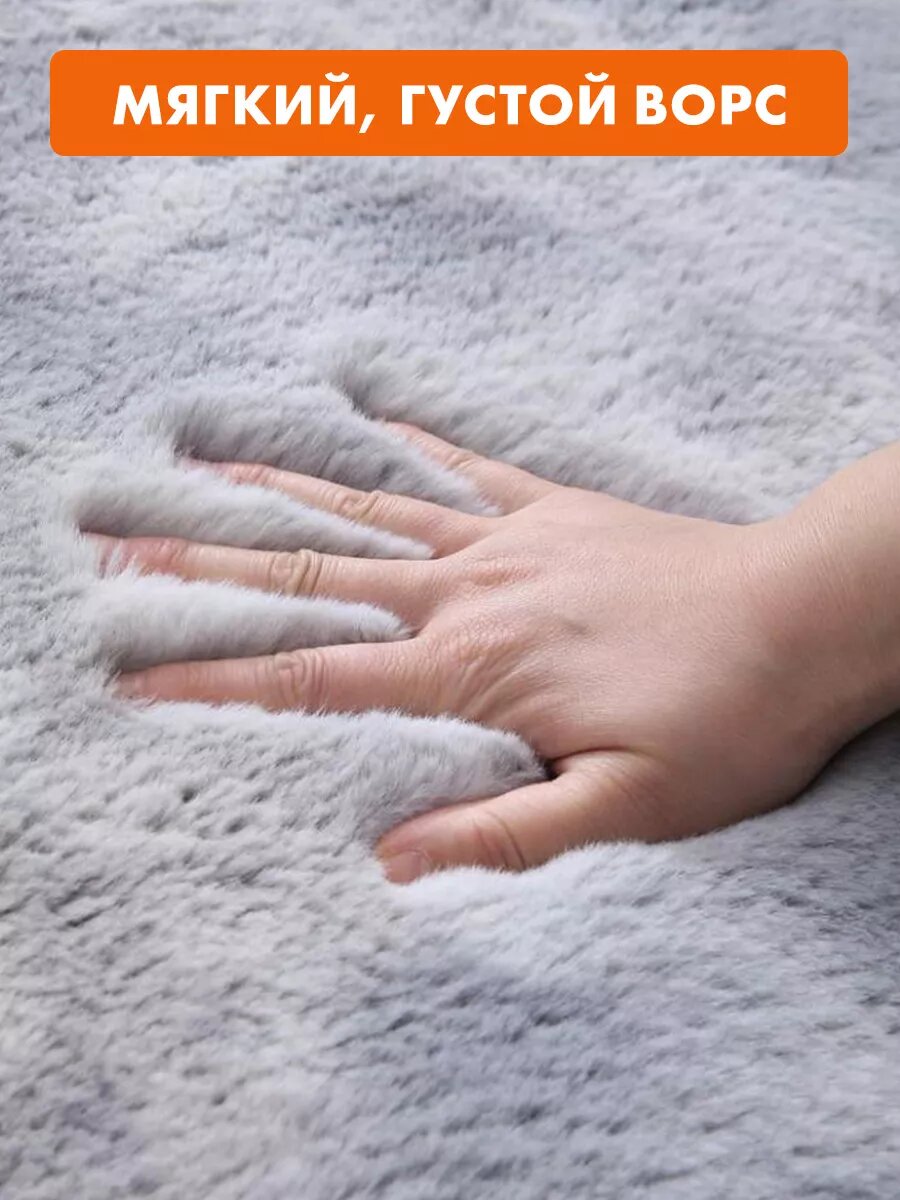 Ковер на пол для комнаты с ворсом 150х200 см, мягкий пушистый меховой в гостиную, спальню, зал и детскую антискользящий, серый