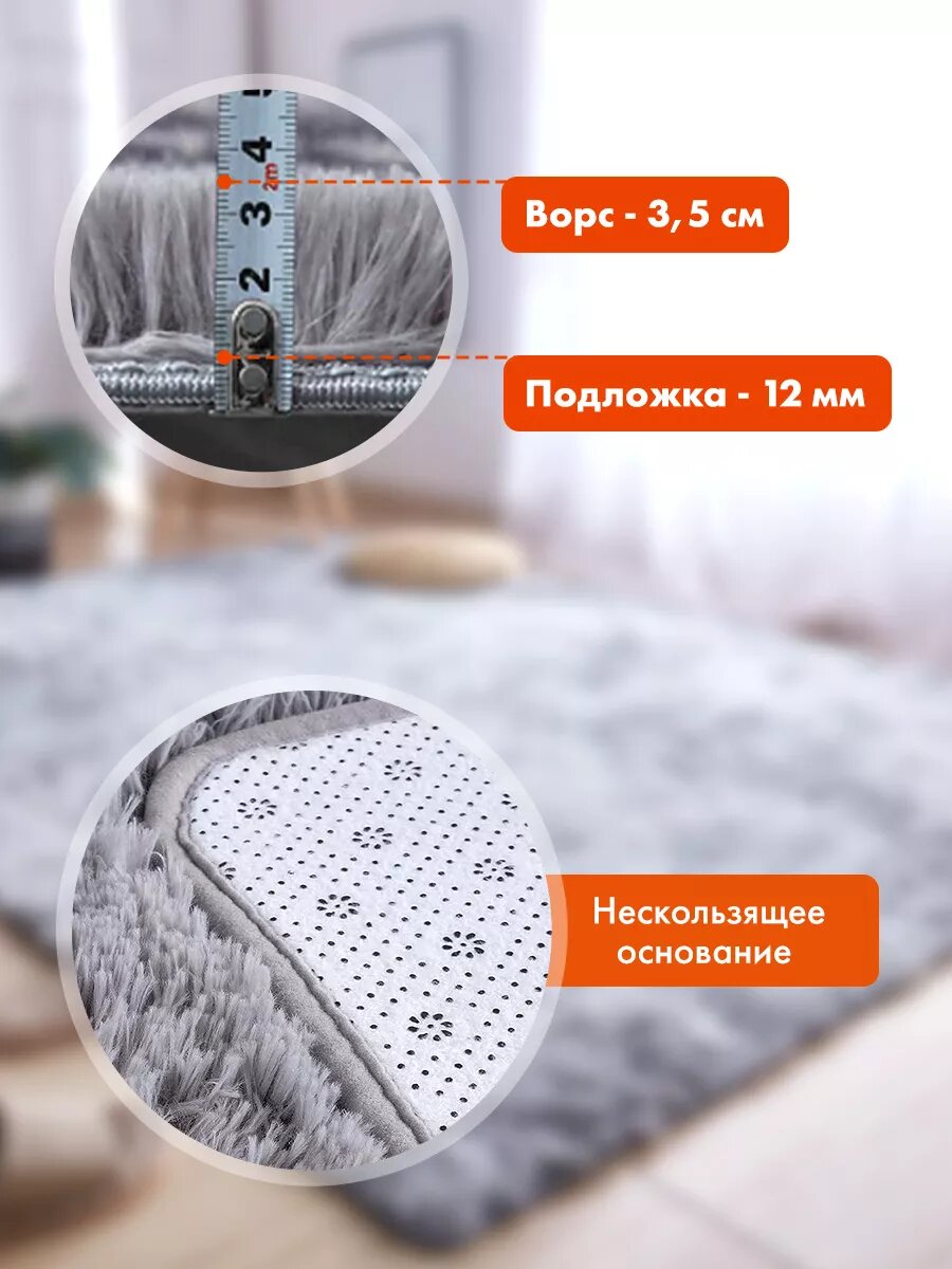 Ковер на пол с ворсом Classmark комнатный, пушистый, 120х160 см, материал изделия полиэстер, основа коврика ПВХ, мягкий и антискользящий, серый