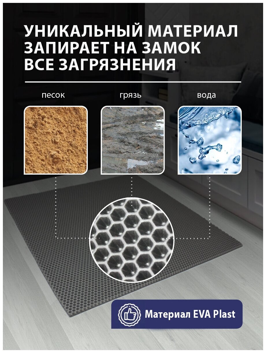 Коврик ЕВА/EVA соты грязезащитный придверный в прихожую, авто, для дачи и дома универсальный 136х65см серый