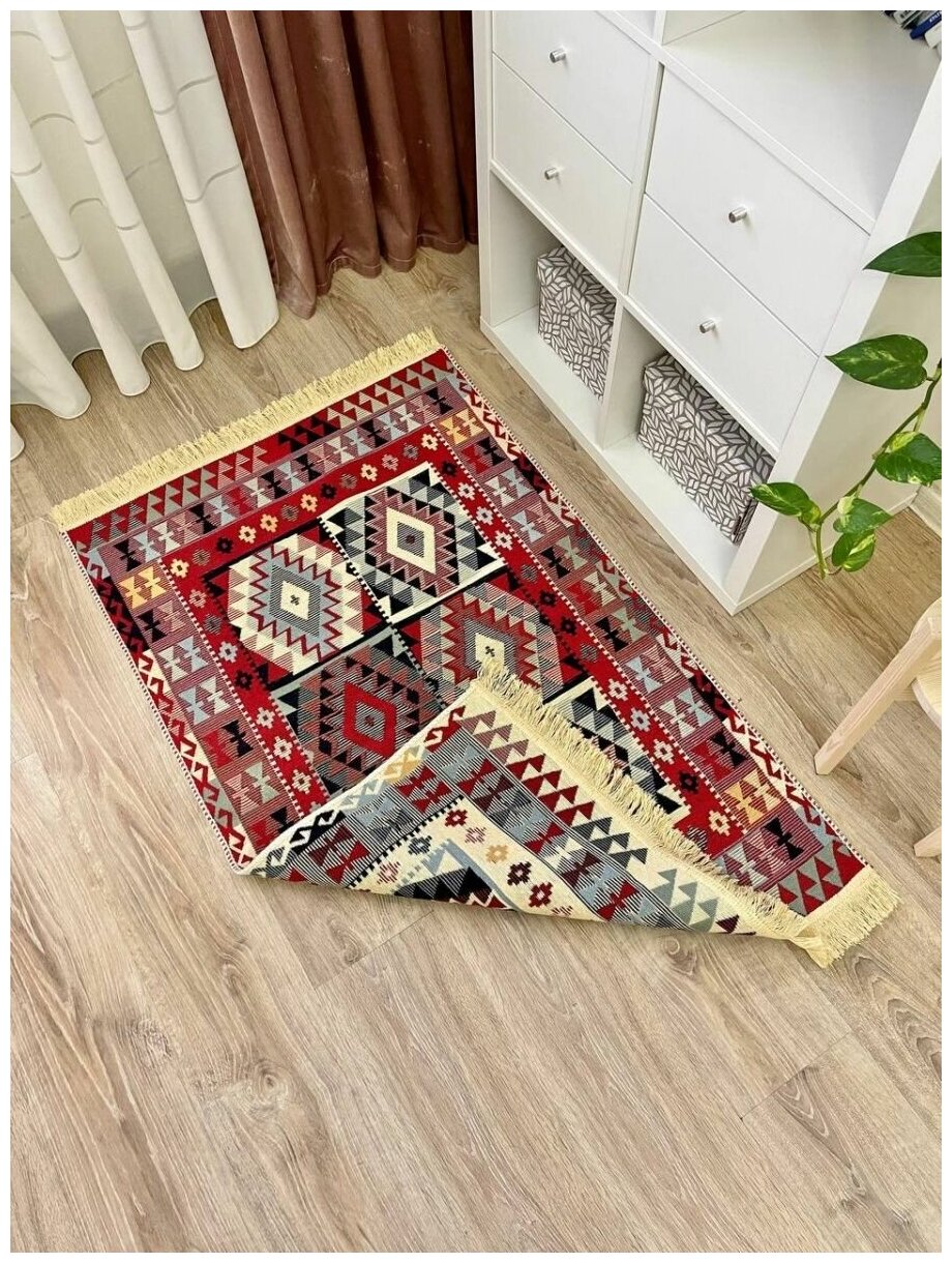 Купить Турецкий хлопковый двусторонний ковер килим 80 см на 125 см / прикроватный коврик / придверный коврик / экокилим Musafir Home