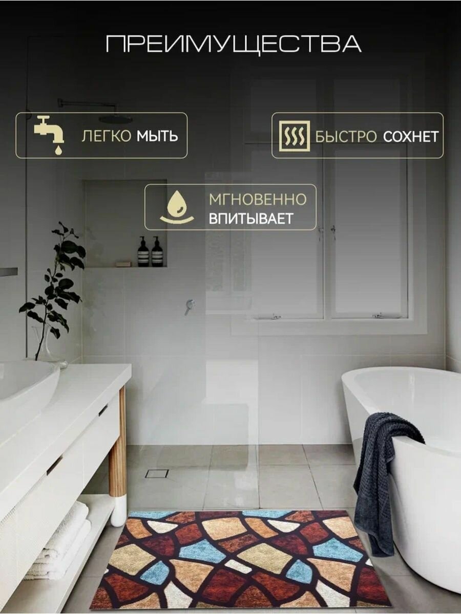 Безворсовый , противоскользящий коврик CarpetWorld "Мрамор" , полипропилен , микрофибра , прямоугольный , 100x60см.