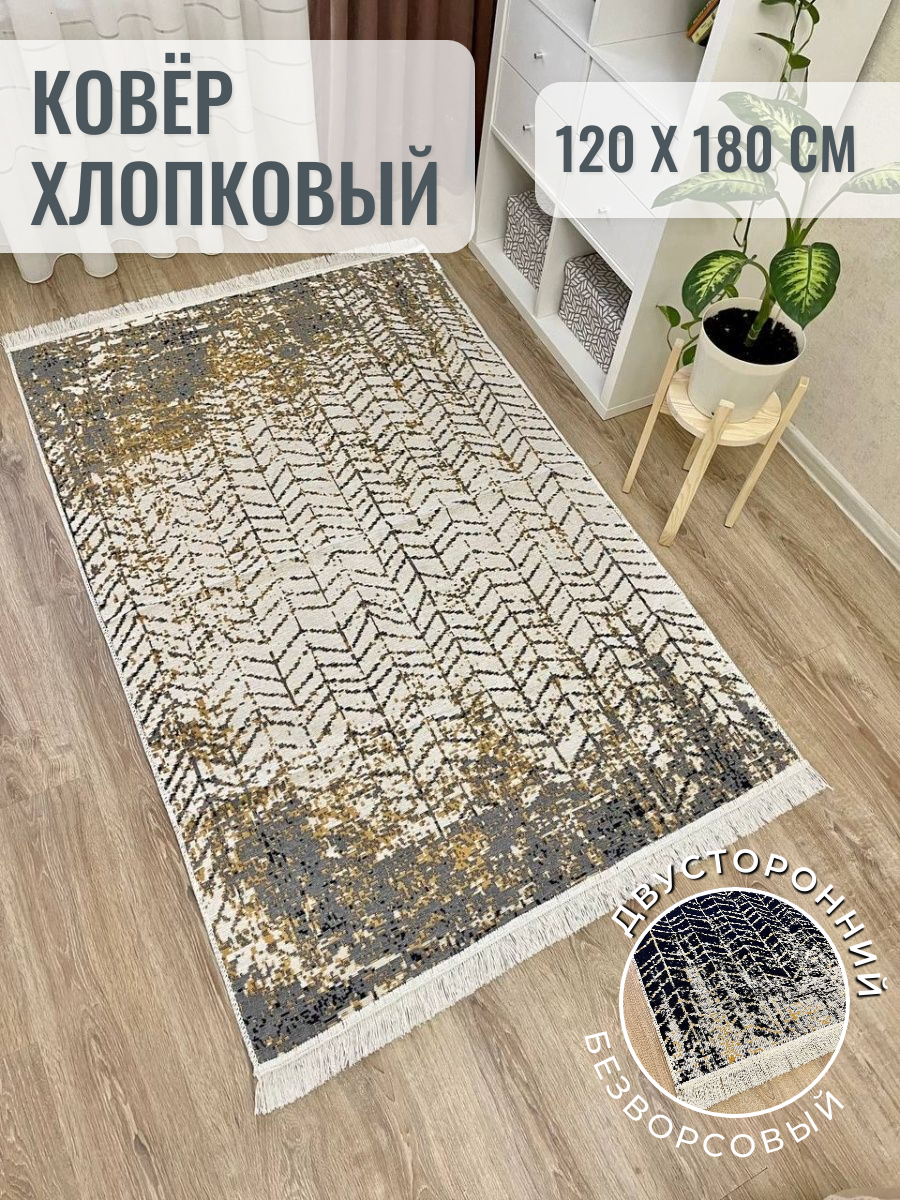 Купить Ковер комнатный хлопковый килим 120×180 см / безворсовый турецкий килим / черно - белый ковер Musafir Home