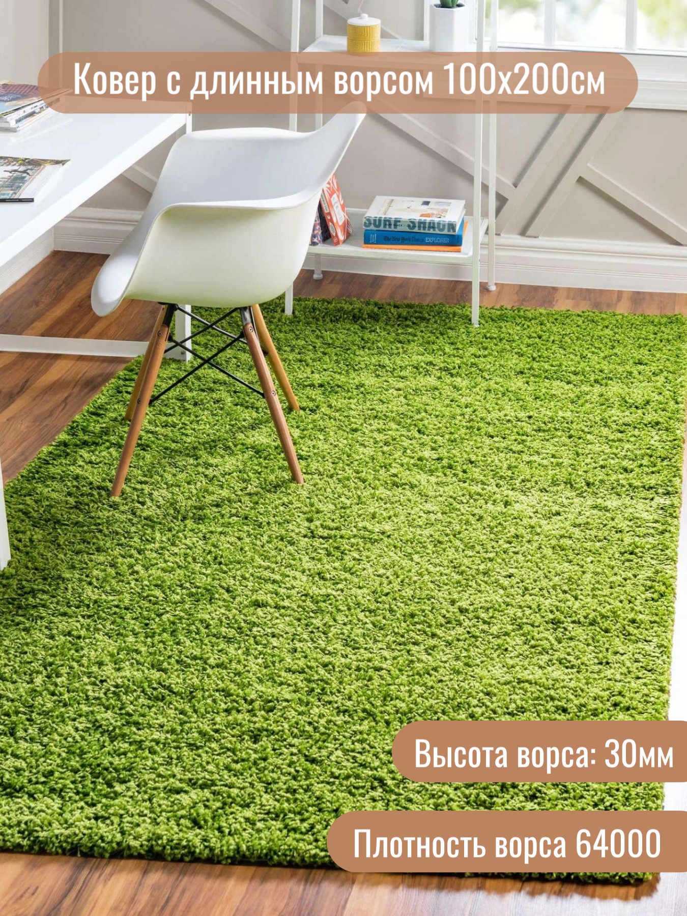 Купить Ковер на пол прямоугольный с длинным ворсом 42811 Green 100х200 см; ковер комнатный; ковер на пол